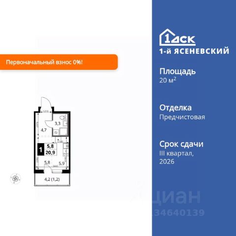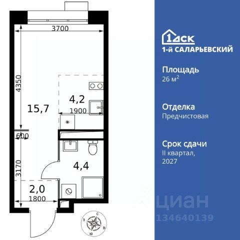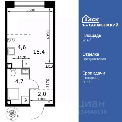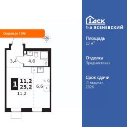 Прямая продажа от застройщика! Жилой Комплекс класса Комфорт+. Продаётся квартира-студия номер 670 общей площадью 27.3 кв.м. на 18-м этаже 24 этажного здания. Чистовая отделка. Цена с учётом скидки. Особенности квартиры: - Линейная планировка - максимальная функциональность и удобство. - Увеличенное количество окон - дополнительное освещение и свежий воздух. - Можно оборудовать рабочее место - комфорт для работы и учёбы. - Линейная кухня - функциональность и практичность в одном решении. - Ниша под шкаф - компактное и удобное место для вещей. Информация о комплексе: Весь микрорайон спроектирован в концепции "без машин". Пейзаж не портят припаркованные автомобили, а родители могут не опасаться за перемещение детей по всему кварталу. Территория комплекса - царство пешеходов. А что делать, если Вы или Вам подвезли чтото габаритное? Проблему решают сквозные подъезды, открывающие доступ в здание с внешней стороны комплекса. Проезд к домам организован по внешнему контуру микрорайона. Места для автомобилей отведены на 7 этажах наземного паркинга и в подземном паркинге 6-го корпуса. За порядком и безопасностью зорко следит множество камер. Безбарьерная среда облегчает передвижение по территории молодых родителей с колясками, маленьких детей и жильцов с ограниченными возможностями. Транспортная доступность: "1-й Саларьевский" расположен в Новой Москве всего в 2 км от МКАД и 5 минутах ходьбы от метро Саларьево. Если Вы за рулем, для Вас удобный выезд на скоростное Киевское шоссе. Передвигаетесь не на автомобиле? Станция метро Саларьево и автовокзал в пешей доступности. У метро находится один из крупнейших ТЦ Новой Москвы "Саларис". Это значит, что всевозможные покупки и разнообразные развлечения для всей семьи тоже рядом. Личный автотранспорт: До Киевского шоссе - 0,2 км До МКАД - 2,4 км До Калужского шоссе - 5 км До Ленинского проспекта - 3,2 км Общественный транспорт: До станции метро "Саларьево" - 7 мин пешком До остановок наземного транспорта - 5-10 мин пешком До Ленинского проспекта на автобусе - 10 мин Внутренняя инфраструктура: Во дворе царит атмосфера легкого беззаботного настроения. По сторонам расположились любимые местными жителями магазинчики, где можно купить товары первой необходимости, кафе, где приятно посидеть с друзьями, и кофе-пойнты. На бульваре можно посмотреть уличную выставку, поиграть с соседями в шахматы и покачаться на световых качелях. Дети растут быстро, и вот уже возникает вопрос садика. На территории есть свой современный садик на 225 мест. Из садика ребенок плавно переходит в свою же муниципальную школу, рассчитанную на 450 мест. Построенная по индивидуальному проекту, она соответствует эстетической и дружелюбной концепции ЖК. Комплекс соседствует с районом, где присутствует уже сложившаяся и развитая инфраструктура. До магазинов, фитнес-центров или кафе легко можно добраться пешком, а до соседних парков можно прокатиться на велосипеде или самокате. В шаговой доступности на