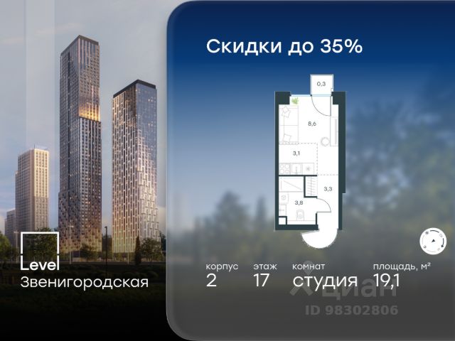 Цена указана с учётом скидки при 100%-й оплате, несубсидированной ипотеке, рассрочке (кроме программы "Рассрочка 0%"). Продается студия площадью 29.40 кв. м без отделки. Квартира находится на 5 этаже 20-этажного корпуса 3, в новом жилом комплексе бизнес-класса Level Войковская, расположенном рядом с живописным заповедником "Покровское-Стрешнево" (застройщик - компания Level Group/Левел групп). Прекрасная транспортная доступность - 7 мин. пешком до станции МЦК "Балтийская"; - 15 мин. пешком до станции метро "Войковская"; - 8 мин. на машине до ТТК; - 15 мин. на машине до центра Москвы; - 20 мин. на машине до Москва-Сити. Продуманный архитектурный проект - стильная архитектура от мастерской Фефелова В. В.; - панорамные виды на парки, Химкинское водохранилище и Останкинскую башню; - лобби с высотой потолков до 6,45 метров; - более 20 видов планировочных решений, включая редкие форматы квартир с террасой и увеличенной высотой потолков до 5,42 метров; - 2 варианта дизайнерской отделки в корпусе 4, предлагаются как дополнительная опция к отделке white box: стиль Modern в светлых холодных тонах и стиль Classic в нейтральной бежевой гамме. Квартиры в корпусах 3 и 5 сдаются без отделки. Расположение Level Войковская строится в престижном Северном округе Москвы. Развитая инфраструктура и живописная природа переплетаются в единый ансамбль, столь значимый для комфортной жизни. Войковский район окружают парки и набережные. В шаговой доступности - парк "Покровское-Стрешнево", не более 15-ти минут на велосипеде занимает путь до Тимирязевского парка и 9-ти минут до парка усадьбы Михалково. Рядом более 60 школ, 75 дошкольных учреждений, 17 государственных и 6 частных вузов, 25 супермаркетов, 4 торговых центра, среди которых ТЦ "Метрополис" и ТЦ "Авиапарк". Внутренняя инфраструктура На территории жилого комплекса предусмотрены коммерческие помещения: кафе, ресторан, пекарня и другие сервисы откроются на первых этажах корпусов. Для жителей будет доступен отапливаемый подземный паркинг на 244 машино-места с доступом с любого этажа на лифте. На территории паркинга будет расположено 125 кладовых помещений для хранения сезонного инвентаря. Лобби и благоустройство Дизайн лобби Level Войковская создан совместно с бюро BLANK. Это уютные гостиные, где хочется задержаться. Теплая цветовая гамма, ресепшен, зоны ожидания, лапомойки и гостевые санузлы - каждая деталь превращает лобби в комфортное продолжение вашего дома. 1,15 га площади в первых двух этапах строительства отведено под приватный внутренний двор, который спроектирован совместно с бюро "Правда". Детские площадки для всех возрастов, спортивные пространства для йоги, воркаута и петанка, уютные зоны для тихого отдыха или работы. Здесь утро начинается с вдохновения, а вечер наполнен приятными моментами. Лифты Комфортное перемещение внутри жилого комплекса будут обеспечивать надёжные лифты с доступом в паркинг с жилых этажей. В каждом корпусе предусмотрено по 3 грузопассажирских лифта.
