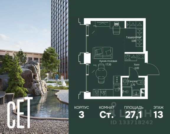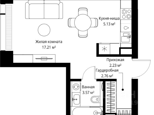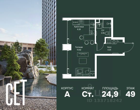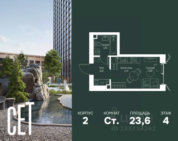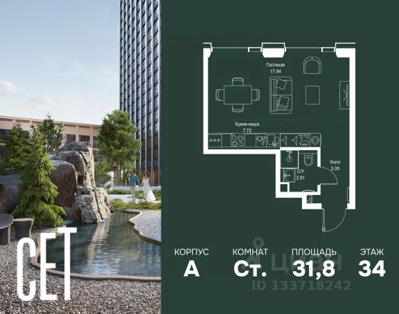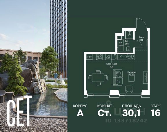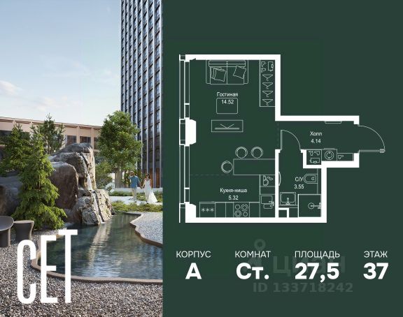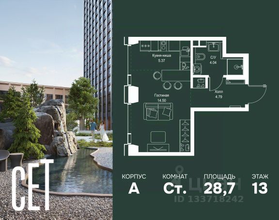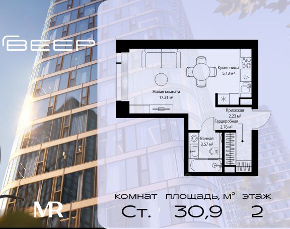 Прямая продажа от застройщика. Продаётся студия общей площадью 20.50 м² с предчистовой отделкой в ЖК Веер на 7-м этаже 46 этажного дома. Жилой комплекс бизнес-класса Веер от компании MR — это футуристичный мультиквартал, расположенный в престижной локации на западе Москвы. Благодаря переменной высоте башен — двух 22-этажных, 46-этажной и двух 59-этажных — возникает динамичность в силуэте комплекса, а его яркий образ вносит разноплановость в архитектурный пейзаж района. Расположение и транспортная доступность: • Веер удобно расположен в непосредственной близости от Кутузовского проспекта, обеспечивая быстрый доступ к центральным районам Москвы • Комплекс находится непосредственно напротив самого большого природного заказника в Москве - парка "Долина реки Сетунь", а за семь минут можно доехать до памятника садово-паркового искусства, Троекуровского леса. • Всего в 15 минутах - центр города, самая престижная бизнес-школа управления России "Сколково", дом творчества "Переделкино". Инфраструктура: Разнообразить свой день резиденты Веер смогут также проводя больше времени на свежем воздухе. Двор разделен на 4 зоны разных эмоций и действий, которые пересечены и соединены веерными прогулочными маршрутами: • Спортивная площадка устроена в глубине "Кленовой рощи" • В "Чайном домике" будет создан навес с утеплением для отдыха в любую погоду • Площадки для детей воплотятся в "Волшебный лес" с цветами, зеркалами и световым дизайном • "Центральная площадь" устроена у водного оазиса живописного пруда. Компания MR предлагает своим клиентам специальные условия приобретения квартир в рамках программ ипотечного кредитования от банков-партнеров.