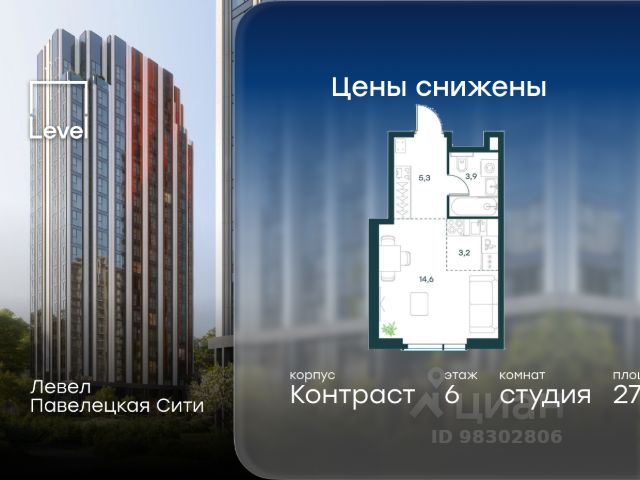 Цена указана с учётом скидки при 100%-й оплате, несубсидированной ипотеке, рассрочке (кроме программы "Рассрочка 0%"). В Даниловском районе столицы (ЮАО) продаётся студия площадью 23.60 кв.м без отделки. Квартира расположена на 14 этаже 20-этажного корпуса 13 в жилом комплексе бизнес-класса Левел Павелецкая Сити. Высота потолков 3.00м. Престижная локация Жилой комплекс бизнес-класса Левел Павелецкая Сити расположен в престижном Даниловском районе Москвы - историческом центре города в окружении парков, Москвы-реки и новейшей инфраструктуры. В 20 минутах пешком есть 3 станции метро, а в 5 минутах езды на авто - ТТК и Садовое кольцо. - 15 мин. пешком до метро "Павелецкая"; - 20 мин. пешком до станций "Тульская" и "Серпуховская"; - 8 мин. на авто до Кремля; - 10 мин. на авто до парка Горького и парка "Зарядье"; - 20 мин. на авто до башен "Москва-Сити". Авторская архитектура Авторская архитектура Авторская архитектурная концепция разработана бюро СПИЧ. Облик корпусов этапов 1 и 2 отсылает к стилистике архитектуры классического Нью-Йорка и золотой эпохи Голливуда. Корпуса этапа 4 вдохновлены эстетикой ар-деко. Умное линейное расположение корпусов гарантирует потрясающие виды на исторический центр и Москву-реку из большинства квартир. Дизайнерские лобби Изысканные интерьеры лобби жилого комплекса отсылают к классическим фильмам золотой эпохи Голливуда. Классика в жилом комплексе Левел Павелецкая Сити - не имитация, а современное осмысление лучшего в этом стиле. В каждом вестибюле оборудованы стойки ресепшен, комфортные зоны ожидания, гостевые санузлы, мойки для лап животных, колясочные. В корпусах по 3-4 лифта с прямым доступом в паркинг. Площадь лобби - от 47,9 до 114,9 кв. м, высота потолков - до 5,46 м. Благоустройство и инфраструктура Для создания благоустройства было приглашено 2 ведущих бюро - ADM и GAFA. Разноуровневое пространство вмещает в себя игровые площадки для детей всех возрастов, тропы здоровья для пеших прогулок, крытые аллеи с качелями, места для работы на свежем воздухе, многофункциональные спортивные площадки - зоны уличных тренировок, столы для пинг-понга, зоны командных игр. Общая площадь закрытого двора - 4,63 га. Комфорт - это когда рядом всё, что нужно для жизни. В жилом комплексе Левел Павелецкая Сити размещены 85 коммерческих помещений, где откроются супермаркеты, кафе, аптеки и многое другое. В составе проекта также предусмотрены собственный фитнес-клуб, развивающий центр Летово Кидс. Технологии и безопасность - Вайфай в лобби и на придомовой территории; - Автоматизированная система контроля и учета ресурсов; - Круглосуточное видеонаблюдение и охрана; - Круглосуточная связь с охраной через приложение, телефон или кол-центр; - Контроль доступа по биометрической системе распознавания лица; - Усиленный сотовый сигнал в лифтах и паркинге; - Распознавание номеров автомобилей при въезде/выезде в/из паркинга.