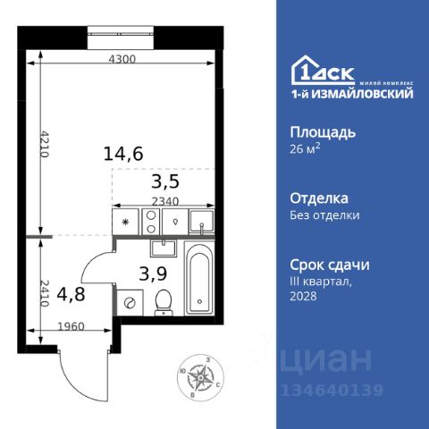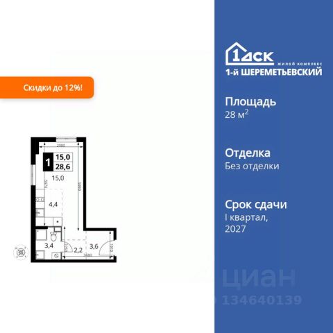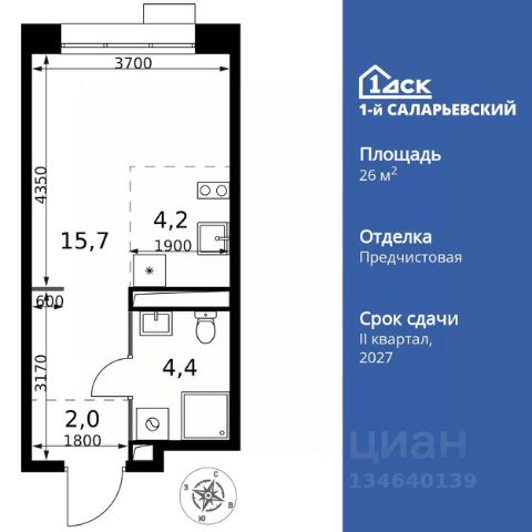 Прямая продажа от застройщика! Жилой Комплекс класса Комфорт+. Продаётся квартира-студия номер 189 общей площадью 26.3 кв.м. на 20-м этаже 21 этажного здания. Отделка Whitebox. Цена с учётом скидки. Особенности квартиры: - Линейная планировка - максимальная функциональность и удобство. - Можно оборудовать рабочее место - комфорт для работы и учёбы. - Ниша под шкаф - компактное и удобное место для вещей. Квартира с предчистовой отделкой (White box). Вам не придется заниматься черновыми и трудоёмкими работы, а чистовую отделку и дизайн - сделайте на свой вкус. Информация о комплексе: Весь микрорайон спроектирован в концепции "без машин". Пейзаж не портят припаркованные автомобили, а родители могут не опасаться за перемещение детей по всему кварталу. Территория комплекса - царство пешеходов. А что делать, если Вы или Вам подвезли чтото габаритное? Проблему решают сквозные подъезды, открывающие доступ в здание с внешней стороны комплекса. Проезд к домам организован по внешнему контуру микрорайона. Места для автомобилей отведены на 7 этажах наземного паркинга и в подземном паркинге 6-го корпуса. За порядком и безопасностью зорко следит множество камер. Безбарьерная среда облегчает передвижение по территории молодых родителей с колясками, маленьких детей и жильцов с ограниченными возможностями. Транспортная доступность: "1-й Саларьевский" расположен в Новой Москве всего в 2 км от МКАД и 5 минутах ходьбы от метро Саларьево. Если Вы за рулем, для Вас удобный выезд на скоростное Киевское шоссе. Передвигаетесь не на автомобиле? Станция метро Саларьево и автовокзал в пешей доступности. У метро находится один из крупнейших ТЦ Новой Москвы "Саларис". Это значит, что всевозможные покупки и разнообразные развлечения для всей семьи тоже рядом. Личный автотранспорт: До Киевского шоссе - 0,2 км До МКАД - 2,4 км До Калужского шоссе - 5 км До Ленинского проспекта - 3,2 км Общественный транспорт: До станции метро "Саларьево" - 7 мин пешком До остановок наземного транспорта - 5-10 мин пешком До Ленинского проспекта на автобусе - 10 мин Внутренняя инфраструктура: Во дворе царит атмосфера легкого беззаботного настроения. По сторонам расположились любимые местными жителями магазинчики, где можно купить товары первой необходимости, кафе, где приятно посидеть с друзьями, и кофе-пойнты. На бульваре можно посмотреть уличную выставку, поиграть с соседями в шахматы и покачаться на световых качелях. Дети растут быстро, и вот уже возникает вопрос садика. На территории есть свой современный садик на 225 мест. Из садика ребенок плавно переходит в свою же муниципальную школу, рассчитанную на 450 мест. Построенная по индивидуальному проекту, она соответствует эстетической и дружелюбной концепции ЖК. Комплекс соседствует с районом, где присутствует уже сложившаяся и развитая инфраструктура. До магазинов, фитнес-центров или кафе легко можно добраться пешком, а до соседних парков можно прокатиться на велосипеде или самокате. В шагов