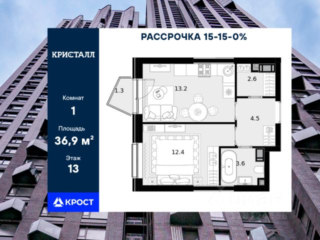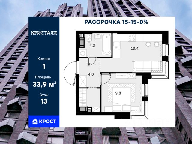 Успейте стать частью уникального проекта премиум-класса на западе Москвы! В продаже квартиры: 1-комнатные от 28,1 м²; 2-комнатные от 61,2 м²; 3-комнатные от 86,6 м²; 4-комнатные от 110,7 м². Первый взнос от 30%! Рассрочка на 2 года без переплат! Крылатское 33 это премиальный жилой комплекс от специализированного застройщика ООО "Сияние". Самый высокий небоскрёб в районе, достигающий отметки в 150 метров и малоэтажный клубный формат высотой от 42 метров на приватной территории площадью 1,4 га. Великолепные виды на излучину Москва-реки, Живописный мост и урбанистический облик города. Эксклюзивные форматы квартир с панорамным остеклением и патио-террасами. Двухуровневый паркинг на 271м/м, премиальные входные группы, ресторан высокой кухни, детский сад и эко-маркет на территории комплекса. Эксклюзивные преимущества: доступ к wellness-центру, коворкингу и клубной гостиной только для резидентов. Над проектом работали именитые российские архитектурные бюро: архитектор проекта бюро "Остоженка", планировочные решения от бюро Александры Федоровой. Расположение Пешком: 5-7 минут - до парка Звезд, Крылатского парка и набережной Москвы-реки; 15 минут - до метро Крылатское Арбатско-Покровской линии; 15 минут - до пристани Крылатская. На автомобиле: 10 минут - до Третьего транспортного кольца; 15 минут - до Садового кольца и Москва- Сити; 20-30 минут - до Аэропорта Внуково; 30-40 минут - до Аэропорта Шереметьево. В 300 метрах от комплекса - удобная транспортная развязка с проспектом Маршала Жукова, обеспечивающая легкий доступ к ключевым магистралям. Благоустройство: Просторная общественная гостиная; Коворкинг с кофе-баром, комфортные переговорные зоны с быстрым wi-fi, зарядными устройствами и библиотекой; Пространство friends lab для организации клубных мероприятий; Wellness-центр с фитнес-залом и массажными кабинетами; Ресторан высокой кухни; Частный детский сад; Детское кафе; Современный детский playhub; Спортивные площадки; Гипоаллергенный сад, безопасные водные пространства, декоративные пруды и сухие фонтаны; Высокоскоростные бесшумные лифты; Разделение зон для резидентов квартала и сервисного обслуживания. Окружение: - парки: Крылатские холмы, природно-исторический парк Москворецкий, Серебряный Бор; - учебные заведения: 5 образовательных комплексов, в которые входят 15 детских садов и 12 школьных корпусов. В удобной транспортной доступности гимназия им. Е. М. Примакова и международный лицей The International School of Moscow; - уникальные спортивные сооружения: гребной канал "Крылатское", легендарный велотрек "Крылатское", "Лата Трэк" для горнолыжников и сноубордистов, ледовый дворец "Крылатское"; - единственный в Москве парк развлечений под открытым небом, включающий более 70 вариантов досуга для любого возраста и времени года. Срок сдачи проекта: 2 квартал 2027 года. Финансирование и эскроу-счет обеспечены банком МКБ.