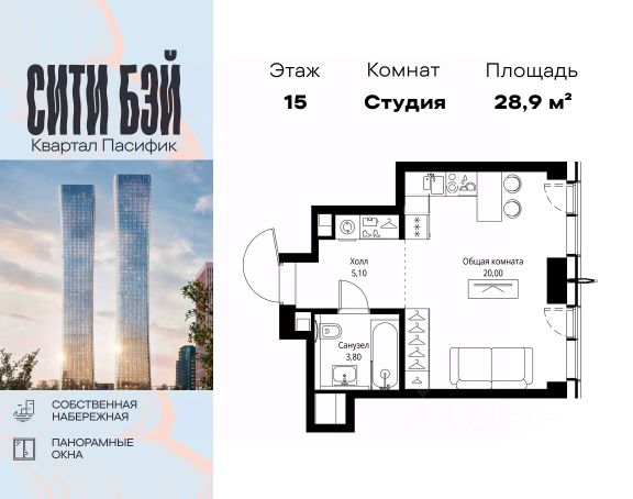 Прямая продажа от застройщика. Продаётся студия общей площадью 25.90 м² без отделки в ЖК Сити Бэй, квартале Пасифик, на 31-м этаже 59 этажного дома. Концепция жилого комплекса Сити Бэй - настоящий город в городе с отлично развитой инфраструктурой и собственной благоустроенной набережной. На территории жилого комплекса расположено пять кварталов - Атлантик, Пасифик, Индиан, Норс, Клиф. Жилой квартал Сити Бэй отличается оригинальной концепцией и выделяется среди других проектов такими характеристиками как: - Архитектура, - Виды из окон, - Природное окружение, вызывая гордость у жителей и восхищение у прохожих. Вся жизнь района Покровское-Стрешнево строится вокруг водных объектов: - Пойма реки Сходни с уникальной экосистемой, - Речка Химка и Химкинское водохранилище, - Москва-река, - Канал имени Москвы. Кругом вода, и местные с удовольствием этим пользуются. А сразу за рекой - центр водного спорта в Строгино с вейк-парком и яхт-Клубами. Помимо воды, здесь очень много зелени: - Рядом Сходненский ковш памятник природы, естественный амфитеатр глубиной 40 метров; - Парк при усадьбе Братцево с фруктовым садом; - Дубовая роща "Маяк", - Алешкинский лес; - Лесопарк Покровское-Стрешнево с пляжами и бобрами. Главные транспортные артерии района: - Волоколамское шоссе, - Таганско-Краснопресненская линия метро и МЦД-2. Всего за 20 минут можно добраться до центра на машине или метро, а МЦД связывает ЖК Сити Бэй с северными, восточными и юго-восточными районами. Компания MR предлагает своим клиентам специальные условия приобретения квартир в рамках программ ипотечного кредитования от банков-партнеров.