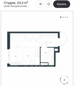 О квартире Продаётся студия общей площадью 28.3 кв.м. без отделки. Квартира расположена на 11 этаже корпуса 5.8 в жилом комплексе бизнес-класса "Среда на Лобачевского" в пешей доступности от метро "Аминьевская". О жилом комплексе "Среда на Лобачевского" полностью соответствует критериям современного жилого пространства. Взяв за основу рациональный подход, мы гармонично соединили дизайн, актуальные тренды и функциональность. Продуманный современный экстерьер и функциональные планировки внутри, приватные пространства и разнообразные досуговые зоны для каждого члена семьи — все это "Среда на Лобачевского". Инфраструктура Район отлично развит и наполнен жизнью, здесь уже есть вся необходимая инфраструктура — детские сады, школы, медучреждения, торговые центры, благоустроены парки для прогулок и отдыха, удобен и легкодоступен городской транспорт. Рядом расположены учебные корпуса крупных университетов — МГУ, МГИМО и РАНХиГС. Школы и детские сады в районе занимают высокие позиции в городских рейтингах, поэтому вам не придется беспокоиться о качестве образования детей. Как и об отдыхе: поблизости расположены живописные пруды, реки и парки. Это Парк Олимпийской деревни, Парк имени 50-летия Октября, Мещерский парк и Очаковские пруды. Теперь поставить галочки в еженедельном чек-листе "спорт-прогулки-встречи с друзьями" можно, не покидая любимый район. Особенности Особое внимание в проекте уделяется созданию функциональных пространств не только внутри дома, но и за его пределами. В ландшафтном парке "Среды на Лобачевского" расположены крытые зоны для спокойного времяпровождения, места для активного отдыха и спорта, коворкинг, соседский комьюнити-центр, водные объекты. —Ландшафтный парк во дворе. —Водный сад с зонами отдыха. —Зоны коворкинга. —Дизайнерские гранд-лобби. —Бесключевой доступ. —Подземный паркинг.