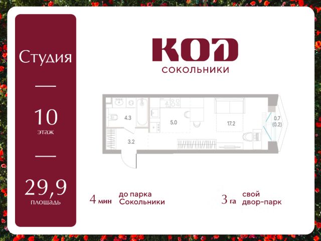 Продаётся студия 33.54 м² в жилом комплексе SOLOS (бизнес-класс) рядом с парком Сокольники. Квартиру отличают панорамное остекление, потолки 3.2 м, улучшенная шумо и воздухоизоляция. Дом сдаётся в 4 квартале 2029 года, продажи проходят через эскроусчета. Подземный паркинг, коворкинг, закрытая благоустроенная территория с фонтаном и артобъектами. Гибкие условия покупки. Ключевые преимущества: — Расположение в одном из самых популярных районов старой Москвы, рядом с одним из крупнейших парков столицы — "Сокольники". — До парка 2 минуты пешком. — Удобный выезд на Третье транспортное кольцо. — Метро "Сокольники" в пешей доступности. Архитектура и проект: Solos — две башни бизнескласса, спроектированные архитектурным бюро Kleinewelt Architekten. Прозрачная, лаконичная архитектура с панорамным остеклением открывает виды на парк и центр города. Высота потолков — 3,2 метра, большие окна в пол. В квартирах предусмотрены инженерные решения для акустического комфорта и чистый воздух благодаря близости парка и современным системам вентиляции. Территория: Закрытый двор с благоустройством в созерцательном стиле: фонтан, артобъекты, зоны тихого отдыха, детские и спортивные площадки. Приватность и безопасность обеспечены современными системами доступа и видеонаблюдения. Инфраструктура: — Подземный паркинг; — Коворкинг для резидентов; — Рестораны и кофейни на первых этажах; — Зоны отдыха и озеленения. Гарантии и надёжность: Застройщик — команда с опытом реализации проектов в сегменте бизнескласса. Все продажи ведутся через эскроусчета: ваши средства остаются на счетах в банке и не могут быть использованы до сдачи дома. Условия покупки: — Ипотека от ведущих банков (программы с господдержкой); — Возможна рассрочка на этапе строительства; — Инвестиционные пакеты для сдачи квартир в аренду. Запишитесь на консультацию и выберите свою квартиру уже сегодня. Мы поможем рассчитать ипотеку, подберём планировку и проведём виртуальный или живой тур по шоуруму. Здесь, среди деревьев и новой архитектуры, остаётся пространство для искренности, созидательности и чувствительности (sense-centric).