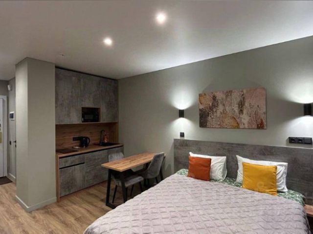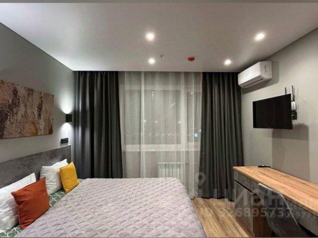 АПАРТАМЕНТЫ: Студия 20 м², 16 этаж из 24, совмещённый санузел, потолки 2,8 м. Дизайнерский ремонт с современной отделкой, окна на улицу, естественное освещение. Полностью готовы к заселению или аренде: кухня с индукционной плитой, холодильник, микроволновка, посуда, стиральная машина, кондиционер, кровать с ортопедическим матрасом, шкаф в прихожей.