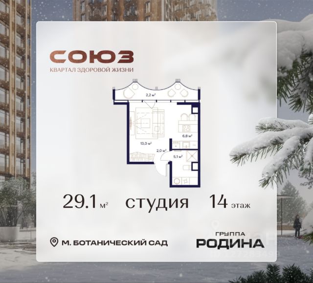 Рассрочка 0% Продаётся квартира-студия площадью 30.1 м² на 16 этаже в Жилом Комплексе "Союз". Квартал здоровой жизни премиум-класса с рекордным количеством олимпийских видов спорта: - Ледовая арена для хоккея и фигурного катания, - Футбольные поля для тренировок, - Спортивный зал для фехтования, - Бассейн на 6 дорожек, - Центр единоборств, - 4 крытых площадки для настольного тенниса, - 7 теннисных кортов (крытых и открытых), - 4 крытых площадки для сквоша, - Легкоатлетический стадион, - Площадки для баскетбола и волейбола. Уникальные форматы квартир с мастер-спальнями, приватными террасами, балконами, а также пентхаусы с открыточными видами на город. Все квартиры продаются с отделкой Shell&Core и панорамным остеклением. Расположение Пешком: - 2 мин. до парка "Сад Будущего"; - 6 мин. до ст. м. "Ботанический сад"; - 6 мин. до ст. МЦК "Ботанический сад"; - 6 мин. до парка "Леоновская роща"; На автомобиле: - 2 мин. до СВХ (МСД); - 5 мин. до Проспекта Мира; - 10 мин. до ТТК; - 15 мин. до Садового кольца; - 25 мин. до аэропорта "Шереметьево". Благоустройство - собственная спортивная инфраструктура 7 Га; - зона для пикников; - игровые и спортивные площадки для детей всех возрастов; - розарий, а также сосновые, каштановые и дубовые аллеи; - площадки под открытым небом для занятий спортом и йоги; - игровые комнаты для детей; - лаунж-зона для резидентов; - просторная переговорная для деловых встреч; - премиальный ресторан "Шабада" Сосо Павлиашвили с водными арт-объектами на прогулочной аллее, садом ароматных трав и сценой под открытым небом; - кафе, химчистки, аптеки и супермаркеты рядом с домом. Окружение - 8 парков: Сад Будущего, Леоновская роща, Хуамин, Главный ботанический сад РАН, Шереметьевская дубрава, Останкино, парк спорта "Яуза", пойма реки Яуза и музей-усадьба "Останкино"; - 3 ВУЗа: ВГИК, РГСУ, МГПУ; - 12 школ, в том числе: школа 1499 им. И.А. Докукина (топ 100), Brookes Moscow, IThub школа; - 18 детских садов, в том числе билингвальный ALERTUM KIDS; - один из крупнейших океанариумов Европы "Москвариум"; - один из крупнейших в Европе торгово-развлекательных центров "Европолис".