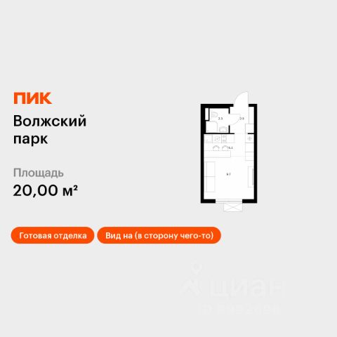 Продаётся квартира-студия площадью 19,8 кв.м на 16 этаже 24 этажного дома (Корпус 6.1, Секция 1) проекта ПИК Волжский парк. Светлый просторный подъезд на уровне земли, функциональная планировка, большие окна, c отделкой. Жилой район "Волжский парк" строится на юго-востоке Москвы. Отсюда до метро "Текстильщики" — 15 минут пешком, а до Садового кольца можно доехать за 10 минут. В проекте 15 жилых домов, детский сад, школа, подземные и надземные паркинги. Вокруг — обжитый район, где есть всё для комфортной жизни: удобный транспорт, детские сады, школы, поликлиники, магазины, кинотеатры и фитнес-клубы. Рядом есть места для отдыха и прогулок — парки, бульвары и пруды. А для любителей спорта — большой спортивный комплекс "Москвич" с бассейном, ледовым катком и большим количеством взрослых и детских секций. В проекте предусмотрена медленная зона для электросамокатов — с 7 утра до полуночи при въезде на территорию квартала скорость электросамокатов автоматически снижается до 15 км/ч. Артикул 931694 (Застройщик АО "Специализированный застройщик "Волжский парк"")