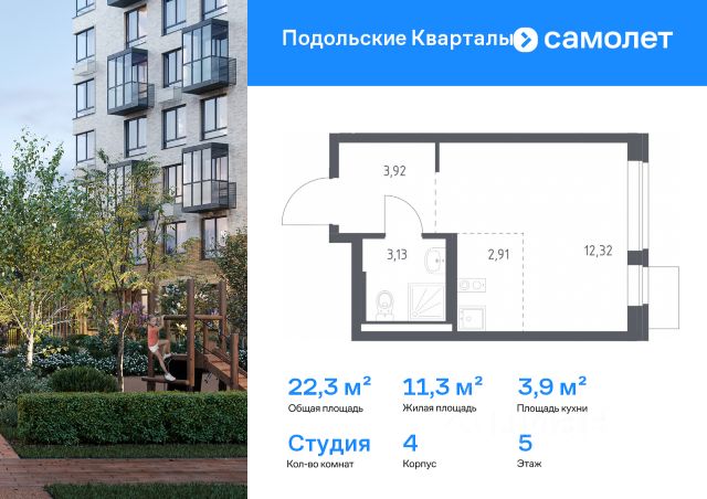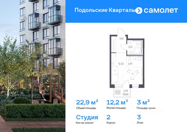 Строим кварталы для жизни с заботой о будущем. Предлагается квартира студия комфорт-класса 22,28 кв.м в корпусе 2 на 3 этаже, в ЖК "Подольские Кварталы" Квартира без отделки. Доступность опции "отделка" и возможность комплектации мебелью и декором уточняйте у застройщика. Приобрести квартиру возможно по специальным акциям от застройщика, с текущими условиями акций можно ознакомиться в блоке "Акций". Цена динамическая и может отличаться, уточняйте актуальность у застройщика. "Подольские кварталы" — жилой комплекс в Новой Москве, рядом с Дубровицким лесом и рекой Десной. До станции МЦД-2 "Остафьево" - 5 минут на общественном транспорте, до станции МЦД-2 "Силикатная" — 8 минут на машине. Рядом — музей-заповедник "Остафьево", усадьбы Плещеево и Дубровицы. В квартале будут детский сад на 200 мест и учебно-воспитательный комплекс на 1 500 мест, в который войдут школа и детский сад. Первые этажи жилых корпусов займут квартиры, кафе, магазины и салоны красоты. Дворы-парки будут радовать жителей цветением и зеленью: здесь высадят липы, сосны, ели, клены и сирень. Плэйхаб станет местом встреч всех любителей активного отдыха: застройщик оборудует зоны тренажеров и воркаута, площадки для игр в настольный теннис, мяч, шахматы. Также появятся современные игровые площадки для детей. Для автовладельцев предусмотрен многоуровневый паркинг. В проекте — монолитные дома высотой от 9 до 12 этажей. Теплые оттенки фасадов соответствуют дизайн-коду "Янтарный берег". Фасады облицованы ложковой кирпичной кладкой.