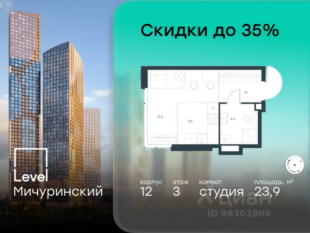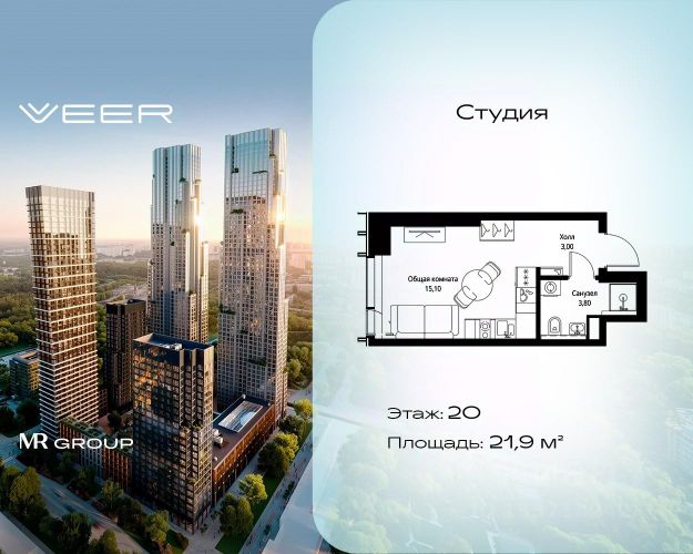 Прямая продажа от застройщика. Продаётся студия общей площадью 23.30 м² с предчистовой отделкой в ЖК VEER на 25-м этаже 59 этажного дома. Жилой комплекс бизнес-класса VEER от компании MR — это футуристичный мультиквартал, расположенный в престижной локации на западе Москвы. Благодаря переменной высоте башен — двух 22-этажных, 46-этажной и двух 59-этажных — возникает динамичность в силуэте комплекса, а его яркий образ вносит разноплановость в архитектурный пейзаж района. Расположение и транспортная доступность: • VEER удобно расположен в непосредственной близости от Кутузовского проспекта, обеспечивая быстрый доступ к центральным районам Москвы • Комплекс находится непосредственно напротив самого большого природного заказника в Москве - парка "Долина реки Сетунь", а за семь минут можно доехать до памятника садово-паркового искусства, Троекуровского леса. • Всего в 15 минутах - центр города, самая престижная бизнес-школа управления России "Сколково", дом творчества "Переделкино". • 18 минут пешком до м. "Давыдково" • Открытие новых станций метро в шаговой доступности в будущем Инфраструктура: Разнообразить свой день резиденты VEER смогут также проводя больше времени на свежем воздухе. Двор разделен на 4 зоны разных эмоций и действий, которые пересечены и соединены веерными прогулочными маршрутами: • Спортивная площадка устроена в глубине "Кленовой рощи" • В "Чайном домике" будет создан навес с утеплением для отдыха в любую погоду • Площадки для детей воплотятся в "Волшебный лес" с цветами, зеркалами и световым дизайном • "Центральная площадь" устроена у водного оазиса живописного пруда. Компания MR предлагает своим клиентам специальные условия приобретения квартир в рамках программ ипотечного кредитования от банков-партнеров.