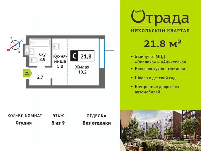В окружении представлена развитая инфраструктура. Всего в 5 минутах на автомобиле расположены знаменитая Ломоносовская школа, школа 21 век, Экономический лицей. Даниловский рынок, ТЦ Estate Mall с кафе и ресторанами, Аутлет Новая Рига, гастро-рынок. Для любителей спорта- Крокус фитнесс, гольф-поля, конюшни, парк Шишкин лес, рыбалка и мн др.