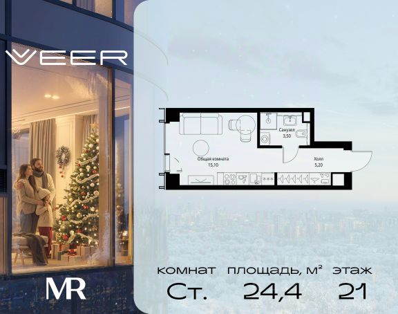 Прямая продажа от застройщика. Продаётся студия общей площадью 20.70 м² с предчистовой отделкой в ЖК VEER на 15-м этаже 46 этажного дома. Жилой комплекс бизнес-класса VEER от компании MR — это футуристичный мультиквартал, расположенный в престижной локации на западе Москвы. Благодаря переменной высоте башен — двух 22-этажных, 46-этажной и двух 59-этажных — возникает динамичность в силуэте комплекса, а его яркий образ вносит разноплановость в архитектурный пейзаж района. Расположение и транспортная доступность: • VEER удобно расположен в непосредственной близости от Кутузовского проспекта, обеспечивая быстрый доступ к центральным районам Москвы • Комплекс находится непосредственно напротив самого большого природного заказника в Москве - парка "Долина реки Сетунь", а за семь минут можно доехать до памятника садово-паркового искусства, Троекуровского леса. • Всего в 15 минутах - центр города, самая престижная бизнес-школа управления России "Сколково", дом творчества "Переделкино". • 18 минут пешком до м. "Давыдково" • Открытие новых станций метро в шаговой доступности в будущем Инфраструктура: Разнообразить свой день резиденты VEER смогут также проводя больше времени на свежем воздухе. Двор разделен на 4 зоны разных эмоций и действий, которые пересечены и соединены веерными прогулочными маршрутами: • Спортивная площадка устроена в глубине "Кленовой рощи" • В "Чайном домике" будет создан навес с утеплением для отдыха в любую погоду • Площадки для детей воплотятся в "Волшебный лес" с цветами, зеркалами и световым дизайном • "Центральная площадь" устроена у водного оазиса живописного пруда. Компания MR предлагает своим клиентам специальные условия приобретения квартир в рамках программ ипотечного кредитования от банков-партнеров.