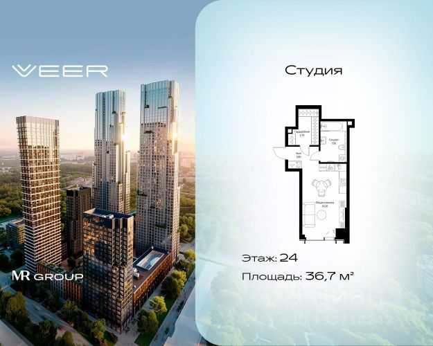 Прямая продажа от застройщика. Продаётся студия общей площадью 23.30 м² с предчистовой отделкой в ЖК VEER на 25-м этаже 59 этажного дома. Жилой комплекс бизнес-класса VEER от компании MR — это футуристичный мультиквартал, расположенный в престижной локации на западе Москвы. Благодаря переменной высоте башен — двух 22-этажных, 46-этажной и двух 59-этажных — возникает динамичность в силуэте комплекса, а его яркий образ вносит разноплановость в архитектурный пейзаж района. Расположение и транспортная доступность: • VEER удобно расположен в непосредственной близости от Кутузовского проспекта, обеспечивая быстрый доступ к центральным районам Москвы • Комплекс находится непосредственно напротив самого большого природного заказника в Москве - парка "Долина реки Сетунь", а за семь минут можно доехать до памятника садово-паркового искусства, Троекуровского леса. • Всего в 15 минутах - центр города, самая престижная бизнес-школа управления России "Сколково", дом творчества "Переделкино". • 18 минут пешком до м. "Давыдково" • Открытие новых станций метро в шаговой доступности в будущем Инфраструктура: Разнообразить свой день резиденты VEER смогут также проводя больше времени на свежем воздухе. Двор разделен на 4 зоны разных эмоций и действий, которые пересечены и соединены веерными прогулочными маршрутами: • Спортивная площадка устроена в глубине "Кленовой рощи" • В "Чайном домике" будет создан навес с утеплением для отдыха в любую погоду • Площадки для детей воплотятся в "Волшебный лес" с цветами, зеркалами и световым дизайном • "Центральная площадь" устроена у водного оазиса живописного пруда. Компания MR предлагает своим клиентам специальные условия приобретения квартир в рамках программ ипотечного кредитования от банков-партнеров.