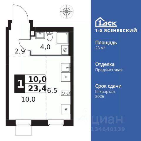 Прямая продажа от застройщика! Жилой Комплекс класса Комфорт Плюс. Продаётся квартира-студия номер 757 общей площадью 26.4 кв.м. на 4-м этаже 16 этажного здания. Без отделки. Особенности квартиры: - Квартиры рядом с метро - м. Корниловская 9 мин пешком - 63 га лесопарка за окнами - Школа c it-кластером и бассейном. 2 детских сада - Линейная планировка - максимальная функциональность и удобство. - Можно оборудовать рабочее место - комфорт для работы и учёбы. - Ниша под шкаф - компактное и удобное место для вещей. Информация о комплексе: В жилом комплексе комфорт-плюс класса "1-го Ясеневского" доступны преимущества двух стилей жизни. Ведь в пешей доступности метро, школа с 25-метровым бассейном и IT-кластером и при этом целых 63 га благоустроенного Троицкого лесопарка под окнами, где так приятно дышать свежим воздухом и слушать пение птиц. Собственная закрытая территория "1-го Ясеневского" представляет собой уютный оазис. Здесь и зеленый освещенный бульвар для прогулок, система велодорожек, маленькая городская площадь, кафе, пекарни и кофе поинты. А еще дворы без машин и многоэтажная парковка. Изюминка территории - фруктовые деревья во дворах и городские сады. "1-й Ясеневский" - всего в 1 км от МКАД, на территории новой Москвы. Жилой комплекс, где есть все необходимое для современного человека. Транспортная доступность: До метро "Корниловская" - 12 минут пешком До метро "Тютчевская" - 25 минут пешком До метро "Теплый стан" - 10 минут на транспорте До метро "Ольховая" - 30 минут на общественном транспорте Личный автотранспорт: Выезд на Калужское шоссе - 500 м МКАД - 1 км Внутренняя инфраструктура: ЖК "1-й Ясеневский" можно назвать идеальным местом для жизни семьи с детьми. Здесь буквально за домом находится Троицкий лесопарк - излюбленное место прогулок молодых родителей. А во внутренних дворах под детские площадки выделены специальные зоны. Они оборудованы всем, что нужно для счастливого детства: современными и максимально безопасными качелями, песочницами и лазалками. Оборудование и игровые сценарии на детских площадках спроектированы вместе с командой детских психологов для правильного развития ребенка и для повышения их интереса. Также рядом с домом два детских садика, один из которых уже построен и школа на 1100 мест. Школу по праву можно назвать образцовым учебным заведением. В ней закладываются основы успешного будущего. Здесь есть класс робототехники, IT-кластер, 25-метровый бассейн и прекрасно оборудованные спортзалы.