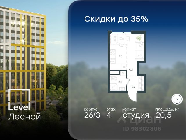 В районе, утопающем в густой зелени лесов, многочисленных парков и скверов, продаётся студия площадью 28.60 кв.м без отделки. Квартира расположена на 15 этаже в жилом комплексе комфорт-класса Level Лесной (компания Level Group/Левел групп).