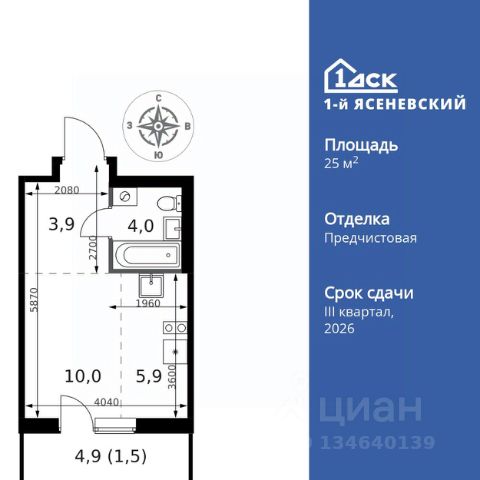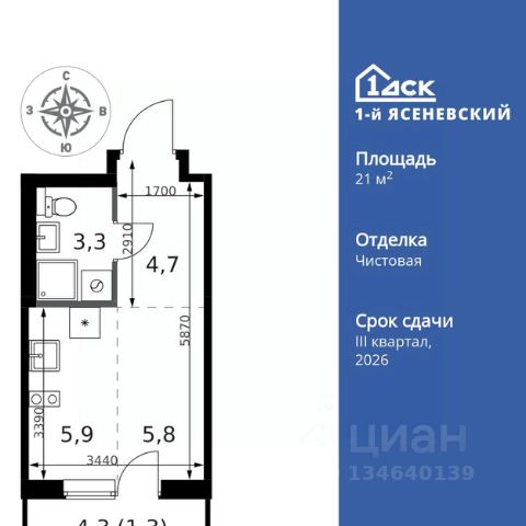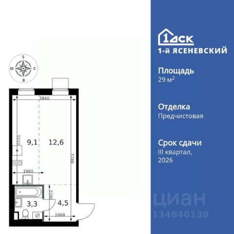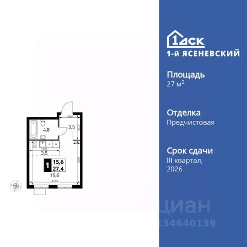 Прямая продажа от застройщика! Жилой Комплекс класса Комфорт Плюс. Продаётся квартира-студия номер 438 общей площадью 30.1 кв.м. на 3-м этаже 18 этажного здания. Предчистовая отделка. Цена с учётом скидки. Особенности квартиры: - Квартиры рядом с метро - м. Корниловская 9 мин пешком - 63 га лесопарка за окнами - Школа c ИТ-кластером и бассейном. 2 детских сада - Организуем показ в удобное для вас время! - Линейная планировка - максимальная функциональность и удобство. - Просторная ванная - место для расслабления и уединения. - Ниша под шкаф - компактное и удобное место для вещей. Квартира с предчистовой отделкой. Вам не придется заниматься черновыми и трудоёмкими работы, а чистовую отделку и дизайн - сделайте на свой вкус. Информация о комплексе: ЖК "1-й Ясеневский": преимущества городской инфраструктуры и природы. Пешая доступность к метро, школе с бассейном и ИТ-кластеру, а также 63 га Троицкого лесопарка под окнами. Закрытая территория с бульварами, велодорожками, кафе и дворами без машин. Фруктовые деревья и городские сады создают уникальную атмосферу. Всего в 1 км от МКАД - идеальный баланс для современной жизни. Транспортная доступность: До метро "Корниловская" - 12 минут пешком До метро "Тютчевская" - 25 минут пешком До метро "Теплый стан" - 10 минут на транспорте До метро "Ольховая" - 30 минут на общественном транспорте Личный автотранспорт: Выезд на Калужское шоссе - 500 м МКАД - 1 км Внутренняя инфраструктура: ЖК "1-й Ясеневский" - идеальное место для семей с детьми. Рядом Троицкий лесопарк для прогулок, а во дворах - современные детские площадки, разработанные с участием психологов. В шаговой доступности два детских сада и школа на 1100 мест с ИТ-кластером, бассейном и классами робототехники. Всё для счастливого детства и успешного будущего. Квартира с предчистовой отделкой - ваш дизайн без черновых работ