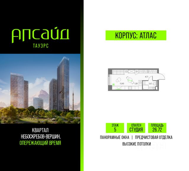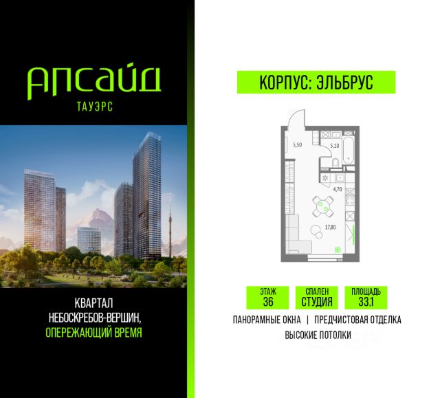 Продаётся студия площадью 37.67 кв.м на 22 этаже 46 этажного корпуса Монте Бьянко в квартале небоскребов "Апсайд Тауэрс". В квартире предчистовая отделка, с видом на Звездный бульвар, Останкинскую Башню, ВДНХ. Номер квартиры Г2204. На первых этажах корпуса Монте Бьянко разместятся: фитнес студия, салон красоты, центр превентивной медицины, образовательные классы, книжный магазин, аптека, фермерская лавка, а также келлеры для хранения сезонных вещей. В приватном закрытом дворе разместятся разнообразные площадки для прогулок, игр и отдыха. Визитной карточкой двора станет уникальная биометрическая игровая пещера со сказочными тоннелями, горками и космическими "мягкими" камнями с неизведанных планет. Планету Земля дети смогут исследовать в павильоне круглый год: объемная крыша укроет от солнца и дождя. Игровая пещера будет реализована в стиле "эмоциональная архитектура". "Апсайд Тауэрс" - технологичный квартал строится в динамично развивающемся Бутырском районе, в 3 мин. от метро, в 5 мин. от ТТК. На территории 7 га возводится 5 высотных башен от 19 до 58 этажей, названных в честь главных вершин земли. Квартиры с панорамными окнами в пол, высокими потолками и современными инженерными решениями. В проекте: - приточновытяжная вентиляция (воздух по качеству не уступает горному); - пятиступенчатая очистка воды с сохранением полезных минералов; - центральное кондиционирование; - внутрипольные конвекторы; - системы безопасности и мониторинга микроклимата; - высокоскоростной интернет на всей территории; - подземный паркинг с зарядками для электрокаров. Социальная инфраструктура: - Upside Клуб (более 2 000 м²) — спацентр на 47м этаже башни "Атлас" (джакузи, сауна, залы для релаксации и йоги), барбекюпатио, гостиная с камином и роялем, коворкинг, переговорные, домашний кинотеатр и др.; - смотровые террасы с видами на город, парки, Останкинскую башню, ВДНХ, Ботанический сад и МосквуСити; - ландшафтный парк 2,5 га с сенсорным садом, игровыми и спортивными площадками; - государственная школа и детский сад; - более 15 000 м² коммерческой инфраструктуры. Бутырский район развивается и станет новым деловым районом Москвы. По программе "Индустриальные кварталы" на территории Огородного проезда построят образовательные и спортивные учреждения, торговые центры, кафе, банки и общественноделовые здания. Рядом — Парк Останкино, ВДНХ, Сокольники, Гончаровский парк, дизайнзавод Flacon и "Хлебозавод". До центра Москвы на авто — 15 мин. Застройщик: ООО "СЗ "КДевелопмент" (Upside Девелопмент).