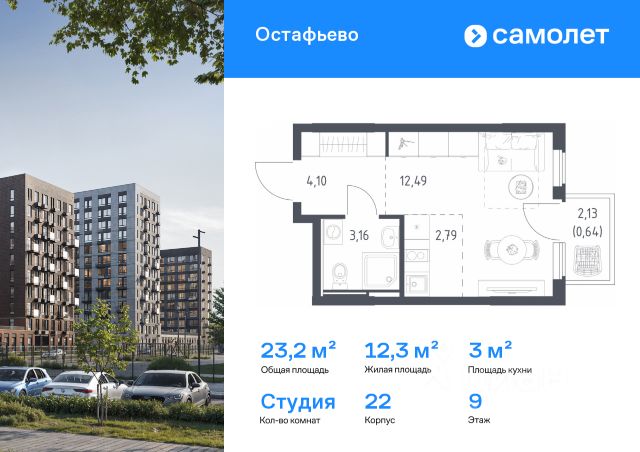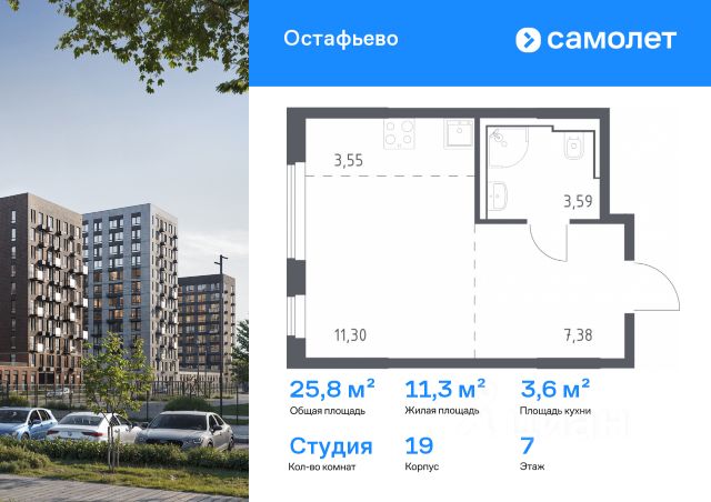 Строим кварталы для жизни с заботой о будущем. Предлагается квартира студия комфорт-класса 22,54 кв.м в корпусе 21 на 4 этаже, в ЖК "Остафьево" Квартира без отделки. Доступность опции "отделка" и возможность комплектации мебелью и декором уточняйте у застройщика. Приобрести квартиру возможно по специальным акциям от застройщика, с текущими условиями акций можно ознакомиться в блоке "Акций". Цена динамическая и может отличаться, уточняйте актуальность у застройщика. "Остафьево" — масштабный жилой комплекс в Новой Москве, рядом с одноименным музеем-усадьбой и городским парком "Барыши". До станций МЦД "Щербинка" и "Остафьево" можно добраться на автомобиле за 57 минут. Часть домов уже сдана, на территории открыты две школы и три детских сада, а в будущем будет построена поликлиника, ТЦ, еще одна школа и три детских сада. Все необходимое рядом: на первых этажах домов работают магазины, аптеки и кафе. Дворы — приватные мини-парки без машин и посторонних. Кроме игровых площадок, для детей обустроили тематический плейхаб "Маяк". В будущем появятся плейхаб "Алиса в стране чудес", арт-объект "Тропа зеркал", а также большой ландшафтный парк. В квартале — монолитные дома комфортной высоты, от 10 этажей. Светлые фасады украшают кирпичные вставки в теплых природных оттенках.