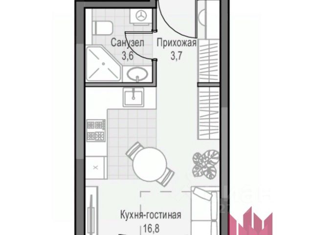 Функциональная планировка квартиры: просторная кухня-гостиная с выходом на балкон, прихожая с гардеробной зоной и совмещенный санузел со всеми современными технологиями