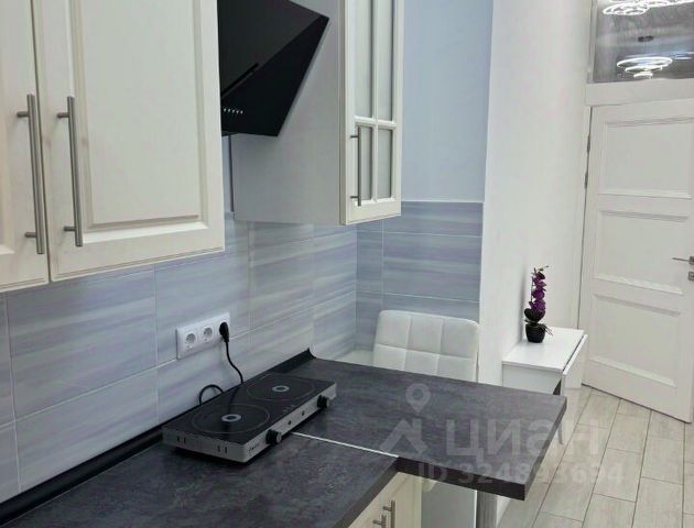 -имеется индукционная плитка, чайник, микроволновка, холодильник, посуда, кондиционер, холодильник, стиральная машинка