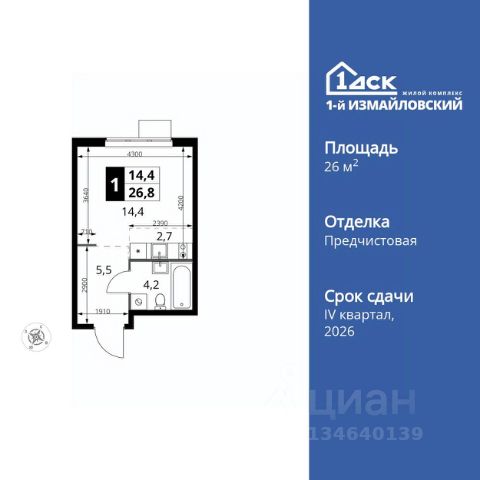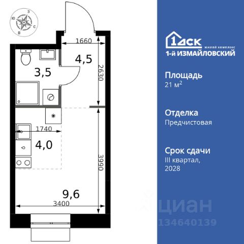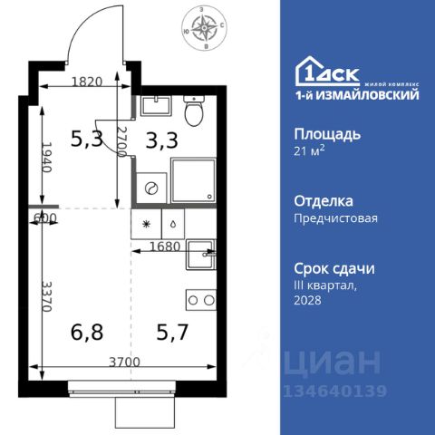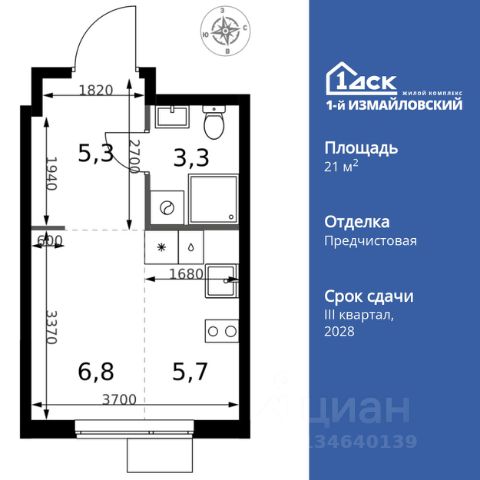 Прямая продажа от застройщика! Жилой Комплекс Комфорт класса. Продаётся квартира-студия номер 236 общей площадью 21.1 кв.м. на 11-м этаже 25 этажного здания. Отделка Whitebox. Цена с учётом скидки. Особенности квартиры: - Линейная планировка - максимальная функциональность и удобство. - Можно оборудовать рабочее место - комфорт для работы и учёбы. Квартира с предчистовой отделкой (White box). Вам не придется заниматься черновыми и трудоёмкими работы, а чистовую отделку и дизайн - сделайте на свой вкус. Информация о комплексе: Современный архитектурный проект "1-й Измайловский" - идеальное место для проживания, расположенное в восточной части Москвы в окружении 14 000 гектаров леса. Комплекс пронизан атмосферой здорового образа жизни и благополучия. Сиреневый сад и близлежащие лесопарки - это места, где можно насладиться лыжными прогулками зимой и тонизирующими пробежками летом. Расположенный между Щелковским шоссе и Амурской улицей, "1-й Измайловский" осмысляет себя не столько через близость к городским точкам притяжения, сколько через соседство с зелеными пространствами и спортивными объектами. Он отгорожен от шоссе застройкой первой линии и собственными садами здоровья. В его окнах - изумрудное море парка "Лосиный остров" и густые кроны окрестных дворов. В его графике - занятия спортом и прогулки в Измайлове. Транспортная доступность: Не более 2,5 км до станций метро "Щёлковская" и "Черкизовская" и МЦК "Локомотив". Щёлковское шоссе соединяет квартал с Северо-восточной хордой и МКАД, Центральным автовокзалом и Восточным железнодорожным вокзалом. Две автобусные остановки в паре минут ходьбы и 11 маршрутов общественного транспорта. На автомобиле 3 минуты до СВХ 12 минут до ТТК 15 минут до Садового кольца Внутренняя инфраструктура: Комплекс находится в исторически сложившемся районе Москвы с хорошим качеством и плотностью инфраструктуры. Торговые центры и сетевые магазины -6 детских садов, включая собственный детский сад на 125 мест -3 школы, включая собственную школу -Поликлиники и медицинские центры -Парки и зоны отдыха Расположение архитектурного проекта создает все условия для тех, кто стремится к здоровому образу жизни и для тех, кто уже сделал выбор в его пользу. В ближайшем окружении расположены несколько стадионов и множество спортивных объектов для занятий спортом на любой вкус: от всеми любимого футбола, баскетбола и до конного спорта. В окружении проекта более 30 километров организованных беговых и велодорожек.