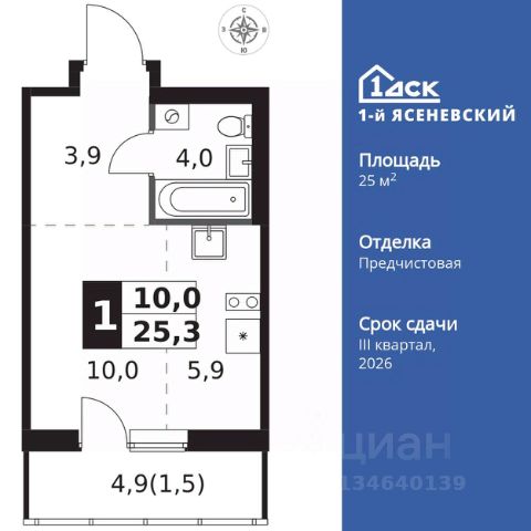 Прямая продажа от застройщика! Жилой Комплекс класса Комфорт Плюс. Продаётся квартира-студия номер 757 общей площадью 26.4 кв.м. на 4-м этаже 16 этажного здания. Без отделки. Особенности квартиры: - Квартиры рядом с метро - м. Корниловская 9 мин пешком - 63 га лесопарка за окнами - Школа c it-кластером и бассейном. 2 детских сада - Линейная планировка - максимальная функциональность и удобство. - Можно оборудовать рабочее место - комфорт для работы и учёбы. - Ниша под шкаф - компактное и удобное место для вещей. Информация о комплексе: В жилом комплексе комфорт-плюс класса "1-го Ясеневского" доступны преимущества двух стилей жизни. Ведь в пешей доступности метро, школа с 25-метровым бассейном и IT-кластером и при этом целых 63 га благоустроенного Троицкого лесопарка под окнами, где так приятно дышать свежим воздухом и слушать пение птиц. Собственная закрытая территория "1-го Ясеневского" представляет собой уютный оазис. Здесь и зеленый освещенный бульвар для прогулок, система велодорожек, маленькая городская площадь, кафе, пекарни и кофе поинты. А еще дворы без машин и многоэтажная парковка. Изюминка территории - фруктовые деревья во дворах и городские сады. "1-й Ясеневский" - всего в 1 км от МКАД, на территории новой Москвы. Жилой комплекс, где есть все необходимое для современного человека. Транспортная доступность: До метро "Корниловская" - 12 минут пешком До метро "Тютчевская" - 25 минут пешком До метро "Теплый стан" - 10 минут на транспорте До метро "Ольховая" - 30 минут на общественном транспорте Личный автотранспорт: Выезд на Калужское шоссе - 500 м МКАД - 1 км Внутренняя инфраструктура: ЖК "1-й Ясеневский" можно назвать идеальным местом для жизни семьи с детьми. Здесь буквально за домом находится Троицкий лесопарк - излюбленное место прогулок молодых родителей. А во внутренних дворах под детские площадки выделены специальные зоны. Они оборудованы всем, что нужно для счастливого детства: современными и максимально безопасными качелями, песочницами и лазалками. Оборудование и игровые сценарии на детских площадках спроектированы вместе с командой детских психологов для правильного развития ребенка и для повышения их интереса. Также рядом с домом два детских садика, один из которых уже построен и школа на 1100 мест. Школу по праву можно назвать образцовым учебным заведением. В ней закладываются основы успешного будущего. Здесь есть класс робототехники, IT-кластер, 25-метровый бассейн и прекрасно оборудованные спортзалы.