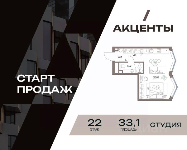 Смарт-студия для молодых специалистов или тех, кто ценит личное пространство и независимость. -Свободная линейная планировка, где гармонично зонирована кухня и спальня -В квартире предусмотрено классическое остекление -Дополнительное окно в квартире наполнит пространство светом -Возможность установки дополнительной перегородки для разделения -Вместительная система хранения в коридоре Смарт-студия подойдет тем, кто ищет функциональное и доступное жилье. Молодой район для жизни "Акценты" в классе бизнес-лайт — точка роста на севере Москвы. Он предлагает элегантные и строгие фасадные решения, авторский ландшафтный дизайн, а также функциональные и доступные по цене планировки. Проект находится в семи минутах пешком от станции метро "Лианозово" и одноименной МЦД-1. Добраться до МКАД можно будет за 10 минут на авто, а дорога до центра займет около 20 минут. Жилой комплекс, расположенный в районе Восточного Дегунино, предлагает развитую инфраструктуру для тех, кто ценит выбор. Он имеет удобный доступ не только к транспорту, но и к паркам, школам, садам, больницам и другим социальным объектам. В пешей доступности находятся 4 поликлиники, 5 школ, 6 детских садов, 3 бассейна и баскетбольная академия. Еще рядом есть несколько лесопарков: "Лианозово" с аттракционами и спортивными площадками для тенниса, волейбола и баскетбола, "Останкино" с конным клубом, прудом и пейнтбол-площадками. А "Северные Дубки" — это завораживающее пространство для прогулок под кронами вековых дубов, берез и лип. Кроме того, в районе не будет скучно и юным жителям. Можно оттачивать трюки в скейтпарке "Союз". Ловким и прыгучим советуем записаться в акробатический центр "Белка".