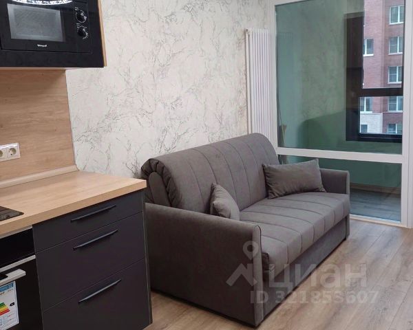 Студия с новым дизайнерским ремонтом 19,1+ 3м лоджия,все выполнено из дорогих материалов,замена радиаторов,бесшовная система разводки воды, все от застройщика переделано (было очень некачественно). Все грамотно поделено на зоны,спальное место с комодом и телевизором,зона кухни и столовой,вся техника и мебель в одном цветовом решении,останется новому владельцу,сан/узел совместный и функциональный,есть место под шкаф в с/узле,огромное место для хранения одежды шкаф 2*2,глубина 60,стол и стулья,на лоджии место под кокон и столик,а также для сушки белья.Сам район интенсивно развивается,начали строить школу