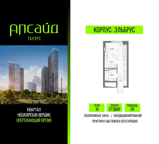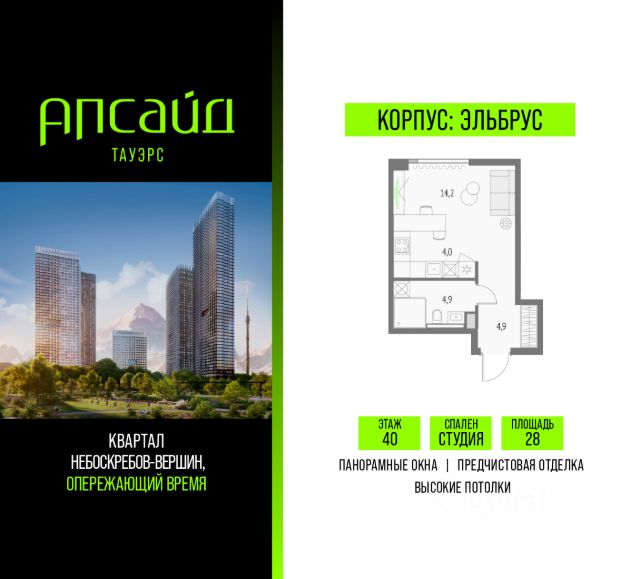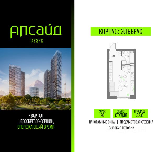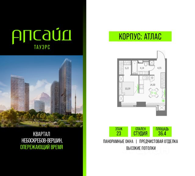 Продаётся студия площадью 33.39 кв.м на 3 этаже 19 этажного корпуса Олимп в квартале небоскребов "Апсайд Тауэрс", в квартире предчистовая отделка, c видом на корпус Атлас, корпус Эльбрус, Гранд-плаза,. Номер квартиры В0301. Апсайд Тауэрс - технологичный квартал строится в динамично развивающемся Бутырском районе, в 3 мин. от метро, в 5 мин. от ТТК. На территории 7 га возводится 5 высотных башен от 19 до 58 этажей, названных в честь главных вершин земли. Квартиры с панорамными окнами в пол, высокими потолками и современными инженерными решениями. Благоустроенная зеленая территория включает: приватные дворы, природный комплекс, прогулочный бульвар, ландшафтный парк 2,5 га с сенсорным садом и многофункциональными игровыми и спортивными площадками. В корпусе откроются магазины, кафе и рестораны, а также другие объекты коммерческой инфраструктуры. Большое внимание в проекте уделяется созданию социальной инфраструктуры. Между "Атласом" и "Олимпом" в трехэтажном стилобате разместится уникальное пространство закрытый клуб для жителей квартала Апсайд Клуб площадью 2 000 кв. м. Здесь разместятся: каминный зал с роялем, многофункциональная детская зона c двухуровневым игровым оборудованием для малышей и дошкольников, плей-рум для подростков, домашний кинотеатр, коворкинг, переговорные и лектории. В башнях откроются смотровые террасы для резидентов с панорамными видами на город, парки, Останкинскую башню, ВДНХ, Ботанический сад и Москву-Сити. Покупая квартиру даже самого минимального размера в Апсайд Тауэрс, вы получаете в пользование 2 000 м² бесплатных общественных пространств. В рамках проекта строится государственная школа и детский сад, разместится более 15 000 кв.м. коммерческой инфраструктуры. Насыщенная социальная инфраструктура формирует множество сценариев для жизни на территории квартала. В Апсайд Тауэрс применяются лучшие технологии и практики, чтобы обеспечить высшее качество жизни: Воздух, не уступающий по качеству горному, обеспечит приточно-вытяжная вентиляция. Пятиступенчатая очистка воды с сохранением полезных минералов. Центральное кондиционирование. Внутрипольные конвекторы с естественной конвекцией. Современные системы безопасности и мониторинга микроклимата. Высокоскоростной интернет на всей территории, в квартирах. Все места в подземном паркинге оборудованы зарядками для электрокаров. Бутырский район непрерывно развивается и готовится стать новым современным деловым районом Москвы. В рамках программы "Индустриальные кварталы" комплексного развития территории Огородного проезда будут построены современные образовательные и спортивные учреждения, торговые центры, кафе, банки, общественно-деловые здания и другие объекты. В пешей доступности работают школы, детские сады, поликлиники, аптеки, супермаркеты и многое другое. Рядом находится несколько крупных зелёных зон для спокойного отдыха: Парк Останкино, ВДНХ, Парк Сокольники, Гончаровский парк. Время в пути на автомобиле до центра Москвы 15 минут. (Застройщик ООО "СЗ "К-Де