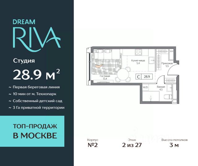 • ✓ В базе Циан 29 квартир-студий в ЖК Dream Riva в Москве