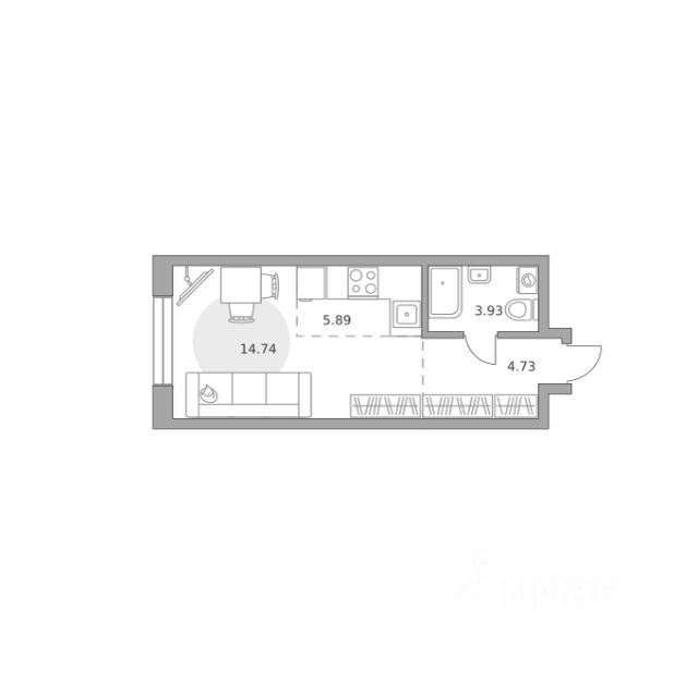 Продаётся студия 568, площадью 29,29 м², на 18 этаже в ЖК "Дубровка от Гранель" корпус 2. Стоимость — от 16885861 руб. Квартира без отделки, планировка односторонняя, окна на улицу.