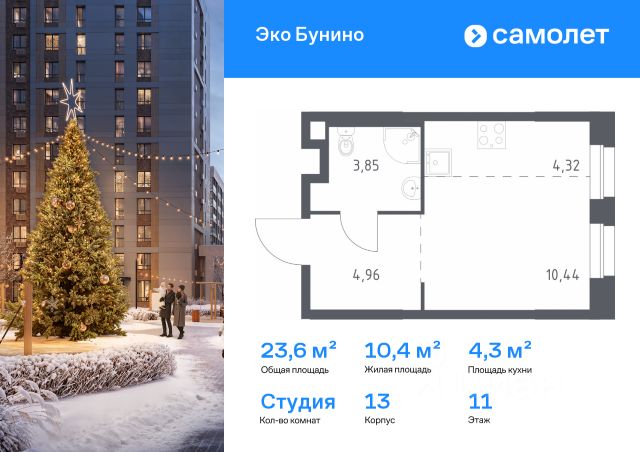 Строим кварталы для жизни с заботой о будущем. Предлагается квартира студия комфорт-класса 23,53 кв.м в корпусе 13 на 4 этаже, в ЖК "Эко Бунино" Квартира без отделки. Доступность опции "отделка" и возможность комплектации мебелью и декором уточняйте у застройщика. Приобрести квартиру возможно по специальным акциям от застройщика, с текущими условиями акций можно ознакомиться в блоке "Акций". Цена динамическая и может отличаться, уточняйте актуальность у застройщика. "Эко Бунино" — жилой комплекс в Новой Москве, полностью готовый для жизни. Уже построены школа и детские сады, открыты ледовая арена и магазины. Рядом — 2 станции метро и 3 лесопарка для прогулок. До станции метро "Новомосковская" — 20 минут пешком по экотропе. Во дворах-парках, закрытых от машин, комфортно и безопасно гулять. Здесь высажены уже взрослые деревья, которые создают прохладную тень в жаркий день. Ребенок любого возраста найдет увлекательное занятие в уже готовом плейхабе с большой горкой в виде слона и уникальным игровым оборудованием. Пока дети играют, родители могут прогуляться по бульвару или отдохнуть под навесом из растений. "Эко Бунино" — это 19 монолитных домов переменной этажности. Для облицовки используется навесной вентилируемый фасад и клинкерная плитка, которая имитирует кирпич. Переменная этажность обеспечивает хорошую инсоляцию дворов: в солнечные дни на территории особенно приятно гулять.