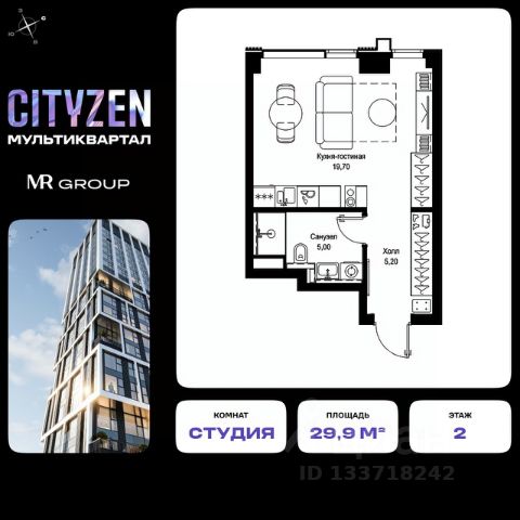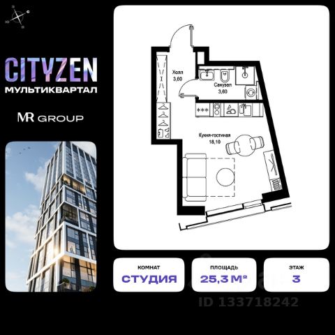 Продается студия от застройщика в жилом мультиквартале CITYZEN на 3-м этаже в корпусе #6 урбан-блока VOLNA. Общая площадь лота составляет 25.20 м² В лобби корпуса #6 урбан-блока VOLNA представлены: 1. Medium-лобби с зоной отдыха 2. Зона консьержа 3. Почта 4. Колясочная 5. Лапомойка 6. Лифтовой холл 7. Санузел 8. Помещения уборочного инвентаря CITYZEN — это большой город в миниатюре. Инфраструктура мультиквартала организована по принципу шаговой доступности от подъезда до любой нужной точки: супермаркета, кофейни, салона красоты, фитнес-центра и др. В домах представлены лобби с атмосферой премиального резорта, дизайн которых вдохновлен французскими интерьерами 1960-х годов. Концепция благоустройства территории мультиквартала предусматривает большое количество вечнозеленых растений, что создает ощущение максимальной близости к природе. Жителей квартала ждут места для отдыха, игр, занятий спортом и прогулок с домашними питомцами. В приватном дворе с собственным садом предусмотрена зеленая комьюнити-гостиная для дружеского отдыха и общения, одна из стен которой подходит для кинопроекций, а также зеленый рабочий кабинет в саду (бизнес-гардена), оборудованный wi-fi станцией и usb-разъёмами для зарядки устройств. Маленьких жителей ждут авторские игровые площадки для разных возрастных групп (от 0 до 12 лет). Начало строительства - 1 квартал 2024 года. Окончание строительства - 3 квартал 2027 года.