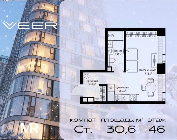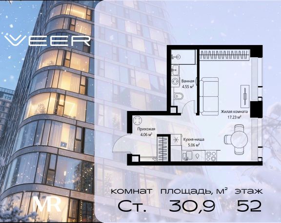 Старт продаж новой очереди! Продаётся студия общей площадью 30.90 м² без отделки в ЖК VEER на 55-м этаже 70 этажного дома. VEER.2 — вторая очередь футуристичного квартала бизнес-класса VEER. Это новая экосистема в престижном Западном округе Москвы, поражающая масштабностью внутренней инфраструктуры. ЖК находится всего в 5 минутах от Кутузовского проспекта и в 15 минутах от Сколково. Ансамбль из четырех стеклянных башен с доминантой в 237 метров разработан по принципу современного урбанизма и выражен в лаконичных объемах — параллелепипедах со сглаженными углами, которые придают зданиям утонченный вид. Расположение и транспортная доступность: • Образовательный комплекс в составе топовой школы, состоящий из двух зданий: основное на 1500 школьных и 450 дошкольных мест, отдельное здание детского сада на 300 мест. • Парк "Долина реки Сетунь" площадью более 700 гектаров • Рядом МГУ, МГИМО, РАНХиГС и Академия ФСБ • 15 минут по Кутузовскому проспекту до ужина в центре с видом на Москву-реку • 18 минут пешком до м. "Давыдково" • Открытие новых станций метро в шаговой доступности в будущем Инфраструктура: Двор в VEER.2 — это ассиметричные холмы, каменные "лабиринты", зеленые ковры и хвойные островки с единой живой экосистемой. Здесь есть все: • Павильон умиротворения Место отдыха под навесом в спокойной части двора, окруженное деревьями. • Активная тропа Тактильная дорога из камней разного диаметра для расслабляющих прогулок. • Бизнес-гарден Оборудованное пространство для работы на свежем воздухе со столом и встроенными розетками. • Детская площадка Двухуровневая площадка "Ботаника" с песочницей, переговорной трубой и горкой "Дружба". Компания MR предлагает своим клиентам специальные условия приобретения квартир в рамках программ ипотечного кредитования от банков-партнеров.