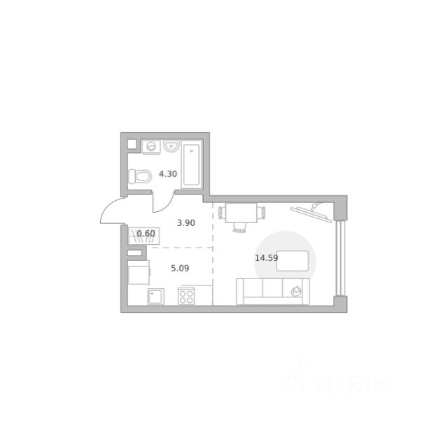 Продаётся студия 642, площадью 29,06 м², на 19 этаже в ЖК "MYPRIORITY Мневники" корпус 1. Стоимость — от 17416809 руб. Квартира без отделки, планировка односторонняя, окна на улицу.