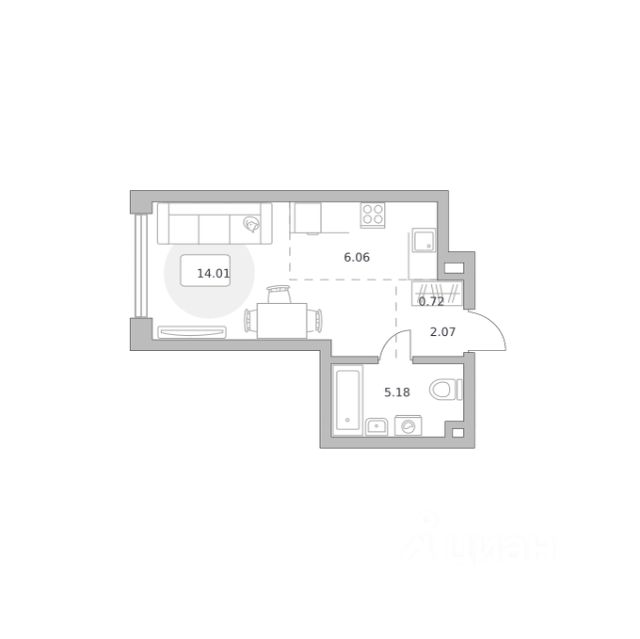 Продаётся студия 1601, площадью 28,02 м², на 7 этаже в ЖК "Мнёвники от Гранель" корпус 1. Стоимость — от 17947542 руб. Квартира без отделки, планировка односторонняя, окна на улицу.