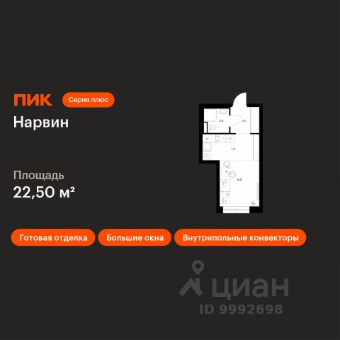 Новостройка! Продается 1-комн. кв-ра площадью 18,9 кв.м, (Корпус 1.3, Секция 3) 23 этаж 38-этажного дома в Нарвин от ПИК. Новый проект ПИК Серии плюс "Нарвин" возводится в Головинском районе Москвы. "Нарвин" — камерный квартал из трёх башен с продуманной архитектурой от российского бюро GAFA. Каждая башня имеет уникальный строгий силуэт, созданный за счёт чередования цветов и форм. В проекте предусмотрены квартиры с готовой отделкой, умными планировками и разнообразными балконами: французские, открытые, закрытые, а также угловые окна и окна в пол с видами на Головинские пруды. А во дворе — благоустроенная территория, которая обязательно станет местом притяжения для жителей. Рядом много мест отдыха, ведь проект возведён в пешей доступности от торговых центров и парков. Шаговая доступность от станции метро "Водный стадион". Рядом просторные парки, магазины и центры развлечений. #d22.02# Артикул 980353 (Застройщик ООО СЗ "Тратта-Центр")