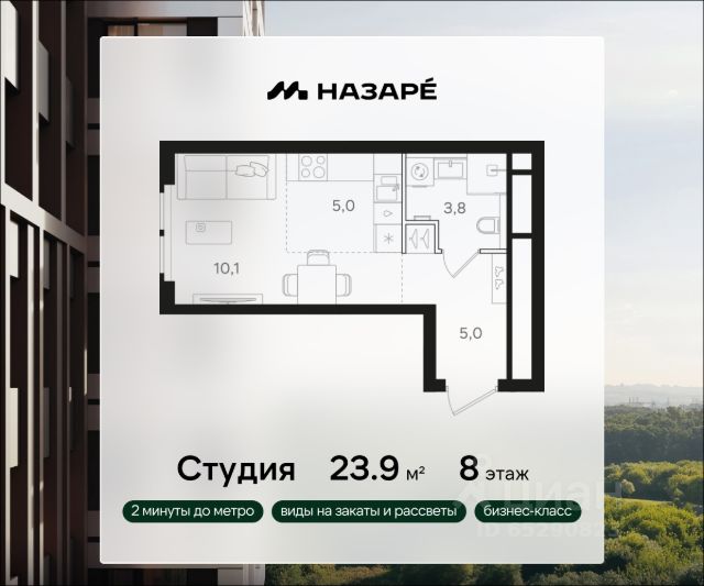 Продается студия в ЖК "НАЗАРЕ'" Общая площадь - 21.60 Тип дома - монолитный Этаж - 25 Год сдачи - 2028 Предлагается квартира площадью 21.60 кв. м в новом современном квартале на востоке Москвы, прямо у станций метро и МЦК "Бульвар Рокоссовского". Квартира располагается в корпусе 3 на 25 этаже комплекса бизнес-класса "НАЗАРЕ'". Великолепная транспортная доступность: • 2 минуты ходьбы до метро и МЦК "Бульвар Рокоссовского"; • 3 минуты на авто - удобный выезд на СВХ (МСД); • 10 минут на авто до национального парка "Лосиный остров"; • 10 минут на авто до "Измайловского парка"; • 15 минут до авто до парка "Сокольники"; • 15 минут занимает выезд на ТТК, • 18 минут на авто до Садового кольца. Индивидуальная архитектура в современном стиле: • шесть башен переменной высотности от 24 до 43 этажей, в том числе одна высотная 143-метровая доминанта, которая станет достопримечательностью востока Москвы; • авторы архитектурной концепции - знаменитое бюро СПИЧ (среди их работ - башня "Федерация", новое здание Третьяковской галереи, реконструкция БСА "Лужники" и др.); • торгово-развлекательный комплекс с фитнес-центром, детской игровой комнатой и открытыми террасами прямо возле квартала; • дизайнерские лобби от бюро ABOVE ARCHITECTURE с панорамными окнами, интерьерами в теплой цветовой гамме и мягкой зоной ожидания располагаются в каждой башне; • корпуса расположены так, чтобы из окон открывались потрясающие виды на закаты и рассветы, зеленые панорамы или огни мегаполиса; Особенности расположения "НАЗАРЕ'" находится максимально близко к метро, и в то же время проект вписан в уже существующую инфраструктуру зеленого столичного района Богородское. Это обеспечивает быстрый доступ ко всем нужным объектам инфраструктуры (детские сады, школы, медцентры, магазины, салоны красоты, фитнес-клубы, футбольные поля, спортивные школы), а также к живописным зеленым зонам - национальному парку "Лосиный остров", парку "Сокольники", Черкизовскому детскому парку, Измайловскому лесопарку с усадьбой Измайлово. Собственная инфраструктура и благоустройство Шесть башен квартала будут объединены цокольным этажом, в который можно попасть как с улицы, так и со стороны лобби. Здесь разместятся необходимые для комфортной повседневной жизни кофейни, супермаркет, рестораны, магазины и многое другое. В комплексе предусмотрен вместительный двухуровневый подземный паркинг с келлерами для хранения сезонных вещей. Во дворе комплекса "НАЗАРЕ'" будут места как для спокойного отдыха и работы, так и для игр и спорта. Здесь организованы игровые площадки для детей всех возврастов, места для стритбола и тенниса, а также зона с природным ландшафтом и коворкинг с экологичной деревянной мебелью.
