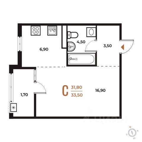 Продаётся студия в строящемся доме (Корпус 1), срок сдачи: I-кв. 2026, общей площадью 34.4 кв.м., на 4 этаже. Комплекс отдельно стоящих жилых корпусов с нежилыми помещениями и подземной автостоянкой.