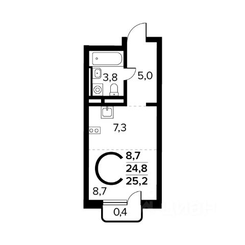 Продается студия, без отделки в ЖК "Новые Ватутинки. Квартал у реки". Общая площадь: 26.8 кв.м., жилая: 8.7 кв.м., площадь кухни: 7.2 кв.м. Этаж: 1. Район расположен всего в 14 километрах от МКАД по Калужскому шоссе, в центральной части Новой Москвы. Добраться сюда можно на автобусах и маршрутках от станций метро "Ольховая", "Теплый Стан" и "Бульвар Адмирала Ушакова". Время в пути от "Теплого Стана" и "Ольховой" занимает в среднем до 20 минут, даже в часы пик. В 2025 году рядом начнется строительство новой станции метро "Десна" (Троицкая линия), которая будет находиться в пешей доступности. Благодаря удачному расположению и развитой инфраструктуре Новые Ватутинки становятся одним из культурных и образовательных центров Новой Москвы. Строительство нового микрорайона началось с трех жилых корпусов, оснащенных подземными паркингами, индивидуальными кладовыми и коммерческими помещениями на первых этажах. Заречный имеет два удобных выезда на Калужское шоссе, что обеспечивает свободный проезд без заторов. В будущем жители также смогут пользоваться станцией метро "Десна", выбрав общественный транспорт. В районе предусмотрено строительство двух образовательных комплексов с детскими садами и школами, поликлиники и торгового центра Сквозь весь микрорайон — от будущей станции метро до набережной и парка "Андерсен" — протянется пешеходный бульвар длиной 1,5 км с уютными скверами, мини-площадями и садами. Архитектурная концепция предусматривает постепенное снижение этажности ближе к бульвару, создавая приятную для жизни и прогулок городскую среду. Принцип "город в гармонии с природой" реализован через дворы без машин и безбарьерное пространство на всей территории. Внутренние дворы будут предназначены для тихого отдыха и детских игр, а активные зоны разместятся на крупных плейхабах и в общественных пространствах. "Андерсен" станет центром активного досуга: здесь запланированы вело- и пешеходные маршруты, спортивные площадки, зоны для индивидуальных тренировок на свежем воздухе, а также места для рыбалки, сапбординга и тюбинга. Квартирный фонд отличается разнообразием планировок и продуманной эргономикой: просторные квартиры, большие лоджии, по две ванные комнаты. Свободные планировки позволят легко зонировать пространство под личные нужды — создать уютную спальню, рабочее место или гостиную. В цокольном этаже предусмотрены кладовые для хранения сезонных и крупных вещей, а также подземный паркинг с индивидуальными и семейными машино-местами. Спуститься к автомобилю можно прямо из квартиры — на лифте. Проект включает систему видеодомофонии: жители смогут получать уведомления о визитах гостей в режиме онлайн, открывать входную дверь удалённо, сохранять снимки с панели вызова, а также при желании — подключить наблюдение за камерами в лифтах через мобильное приложение. Выдача ключей в 2027г.