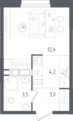 Продаётся студия в строящемся доме (Корпус 2 стр2), срок сдачи: IV-кв. 2026, общей площадью 14.1 кв.м., на 5 этаже. Новый жилой комплекс "Ольховый Квартал" от Группы Самолет