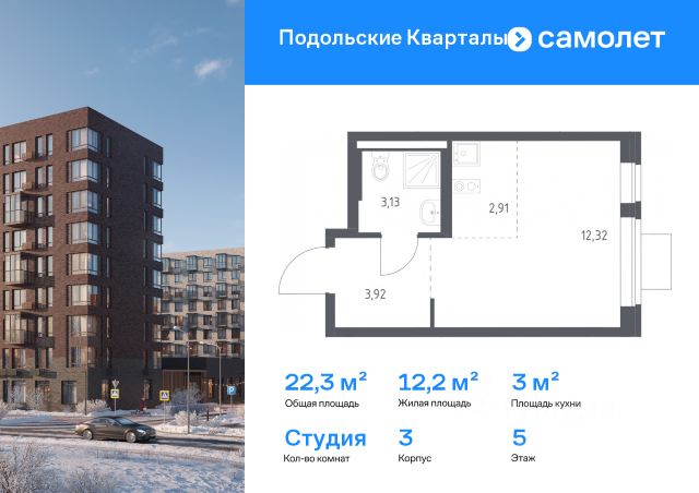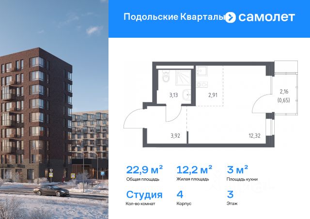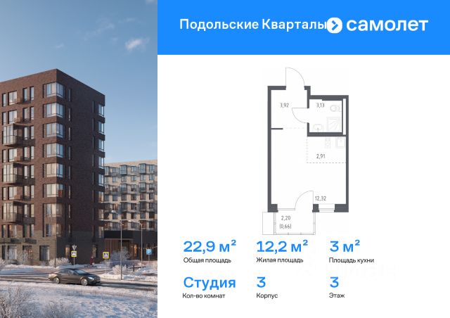 Строим кварталы для жизни с заботой о будущем. Предлагается квартира студия комфорт-класса 22,93 кв.м в корпусе 4 на 3 этаже, в ЖК "Подольские Кварталы" Квартира без отделки. Доступность опции "отделка" и возможность комплектации мебелью и декором уточняйте у застройщика. Приобрести квартиру возможно по специальным акциям от застройщика, с текущими условиями акций можно ознакомиться в блоке "Акций". Цена динамическая и может отличаться, уточняйте актуальность у застройщика. "Подольские кварталы" — жилой комплекс в Новой Москве, рядом с Дубровицким лесом и рекой Десной. До станции МЦД-2 "Остафьево" - 5 минут на общественном транспорте, до станции МЦД-2 "Силикатная" — 8 минут на машине. Рядом — музей-заповедник "Остафьево", усадьбы Плещеево и Дубровицы. В квартале будут детский сад на 200 мест и учебно-воспитательный комплекс на 1 500 мест, в который войдут школа и детский сад. Первые этажи жилых корпусов займут квартиры, кафе, магазины и салоны красоты. Дворы-парки будут радовать жителей цветением и зеленью: здесь высадят липы, сосны, ели, клены и сирень. Плэйхаб станет местом встреч всех любителей активного отдыха: застройщик оборудует зоны тренажеров и воркаута, площадки для игр в настольный теннис, мяч, шахматы. Также появятся современные игровые площадки для детей. Для автовладельцев предусмотрен многоуровневый паркинг. В проекте — монолитные дома высотой от 9 до 12 этажей. Теплые оттенки фасадов соответствуют дизайн-коду "Янтарный берег". Фасады облицованы ложковой кирпичной кладкой.