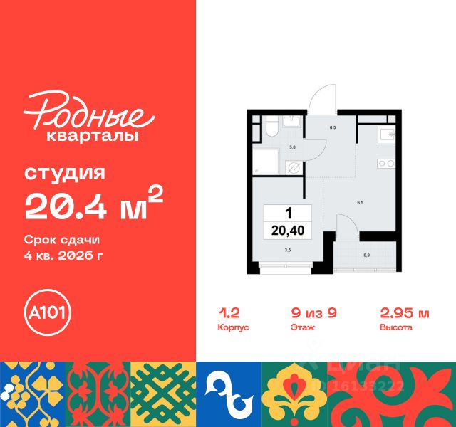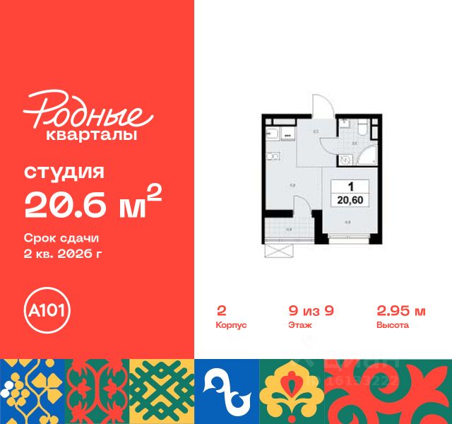 Продается студия 344 в новостройке Жилой район "Родные кварталы" по адресу Москва, ТиНАО, Новомосковский АО, Марушкинское С/П, жилой комплекс Родные Кварталы, 2, район Внуково, Новомосковский административный округ, Москва. Общая площадь квартиры - 24.00 кв. м., этаж 3 из 9, секция 8. Тип проекта, по которому построен дом - монолит, компания-застройщик - ООО "А101". Стоимость квартиры - 8702160 Р. Срок сдачи - 2 квартал 2026. ПРЕДЛОЖЕНИЯ ОТ ЗАСТРОЙЩИКА В ФЕВРАЛЕ 2026: Скидки до 10% на все квартиры. Только в офисах продаж до 28 февраля. Ипотека от 13,9 % для всех! На весь срок. "Семейная ипотека" вернулась. Ставка от 3,5 % на весь срок! Без удорожания! Выгодное ипотечное комбо: Ипотека от 2200 р./мес. и от 6 % после рождения ребёнка! Ипотека для всех "Держи пять!" - ставка 5 % на 2 года! *более подробную информацию по скидкам и акциям уточняйте в отделе продаж ЖК "Родные кварталы" строится в экологически благоприятной локации, рядом с парком Изварино и Ульяновским лесопарком. До станции метро "Аэропорт Внуково" и МЦД "Толстопальцево" - 15 мин. на транспорте. До Боровского, Киевского, Минского шоссе - 3, 6 и 20 минут соответственно Основная концепция благоустройства - воссоздание колорита разных регионов России. Этот же принцип использован в благоустройстве и озеленении района от бюро GAFA. Лесопарк, зоны отдыха, пешеходный бульвар со спуском в виде амфитеатра к набережной и центральной торговой площади, спортивные площадки. В шаговой доступности откроются детские сады и школа, поликлиника. На первых этажах домов - спортклубы, клиники, аптеки, супермаркеты, кафе и многое другое. Цветовые решения лобби также созвучны климатическим зонам России. Здесь появятся зоны ожидания с гостевыми санузлами и колясочными. Предусмотрены подземные паркинги и кладовые. Преимущества "Родных кварталов" - уютная атмосфера "малой родины" - полноценная инфраструктура внутри района - выезд на ключевые шоссе - от 3 минут на автомобиле - малоэтажная застройка