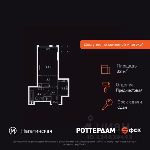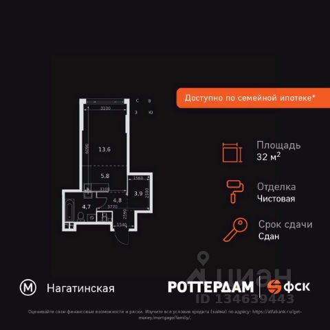 Прямая продажа от застройщика! Жилой Комплекс бизнес-класса на набережной возле Нагатинского причала. Продаётся квартира-студия номер 155 общей площадью 27.1 кв.м. на 22-м этаже 29 этажного здания. Предчистовая отделка. Цена с учётом скидки. Особенности квартиры: - Организуем показ в удобное для вас время! - Просторная ванная - место для расслабления и уединения. - Гардеробная - удобство для хранения и организации вещей. Квартира с предчистовой отделкой. Вам не придется заниматься черновыми и трудоёмкими работы, а чистовую отделку и дизайн - сделайте на свой вкус. Информация о комплексе: ЖК "Роттердам": идеальная транспортная доступность для любого настроения. Пешая доступность до метро, удобный выезд на Варшавское шоссе к ТТК и Садовому кольцу, а также живописная Нагатинская набережная с маршрутом до Кремля. Выбирайте метро, автомобиль, трамвай или велопрогулки вдоль реки - всё под рукой. Транспортная доступность: Всего в 5 минутах пешком до метро Нагатинская и 8 минутах от МЦК Верхние Котлы. Рядом Аэроэкспресс до метро Домодево. До ТТК 2,2 км и 4,9 км до Садового кольца. Внутренняя инфраструктура: ЖК "Роттердам": идеальный баланс работы и отдыха на Нагатинской набережной. Коворкинги, детские площадки и игровой центр для всей семьи. Рядом - 5 парков, спортивные и деловые центры в шаговой доступности. Архитектура сочетает высотные и малоэтажные здания без ощущения "каменных джунглей". Панорамные виды из окон верхних этажей и прямой выход к Москве-реке. Уединённость, безопасность и комфорт для тех, кто ценит личное пространство и время. Квартира с предчистовой отделкой - ваш дизайн без черновых работ