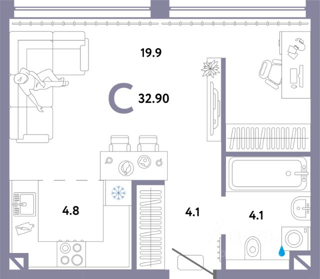 Продаётся студия в строящемся доме (Дом 1), срок сдачи: II-кв. 2026, общей площадью 32.9 кв.м., на 9 этаже. Многоэтажные жилые дома с объектами инфраструктуры, расположенные по адресу: г. Москва, внутригородское муниципальное образование Очаково - Матвеевское, ул. Озерная, вл. 42.