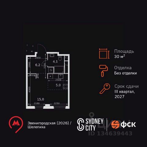 СТАНДАРТНАЯ ИПОТЕКА 10% БЕЗ НАЦЕНКИ! Прямая продажа от застройщика! Жилой Комплекс премиум-класса. Продаётся квартира-студия номер 434 общей площадью 30.8 кв.м. на 26-м этаже 27 этажного здания. Без отделки. Цена с учётом скидки. Особенности квартиры: - Линейная планировка - максимальная функциональность и удобство. - Увеличенная высота окна - больше воздуха и света. - Можно оборудовать рабочее место - комфорт для работы и учёбы. - Ниша под шкаф - компактное и удобное место для вещей. Информация о комплексе: Премиум-класс прямо на берегу Москвы-реки, с прямым выходом на набережную и потрясающими панорамными видами! На Шелепихинской набережной, расположен причал для речных трамваев. Вам станет доступна единственная столичная транспортная артерия, на которой никогда нет пробок: 20 минут до Москва-Сити, да еще и с вдохновляющими видами по пути. Входные группы домов - это индивидуальные дизайн-проекты, посвященные трем главным местам в жизни Лермонтова: Тарханам, Петербургу и Кавказу, которые объединяют сочетание эстетики и комфорта. Бурная жизнь соседей больше не сможет нарушить ваш покой, а к вам никто не постучит, если вы захотите прибавить громкость в любимом музыкальном треке или Ваши дети захотят устроить ночную пробежку! Живите только по своим правилам. В каждой квартире подключен базовый пакет Умная квартира забудьте о беспокойстве о протечке; настройте свои сценарии управления техникой и электричеством; общайтесь с Умной квартирой голосом; Можете легко расширить базовый пакет и подключить дополнительные опции и устройства, чтобы из любой точки мира управляй работой бытовых приборов и систем, например: включайте разогрев ужина; регулируйте яркость яркость света; регулируйте громкость музыки; настраивайте работу теплых полов; Транспортная доступность: В 50 м до новой станции метро "Звенигородская". Вторая улица от ЦАО и соседство с Москва-Сити. Все виды общественного транспорта, в том числе речные трамвайчики, в пешей доступности Внутренняя инфраструктура: Основная артерия жизни квартала - центральный бульвар. Вы с радостью обнаружите, что путь до престижных школ и вузов, развлечений и магазинов сжался до нескольких минут езды на машине. К вашим услугам: - муниципальные школы и ДОУ, музыкальные и спортивные школы, - 8 муниципальных ДОУ и 2 ДОУ с изучением английского языка - 5 медицинских учреждений - ТРЦ "Хорошо!" и "Авиапарк" - Сетевые фитнес-клубы World Class, X-Fit и др. - Горнолыжные склоны "Лата Трэк", ледовый дворец и гребной канал "Крылатское" и еще 7 природных парков