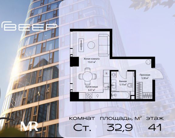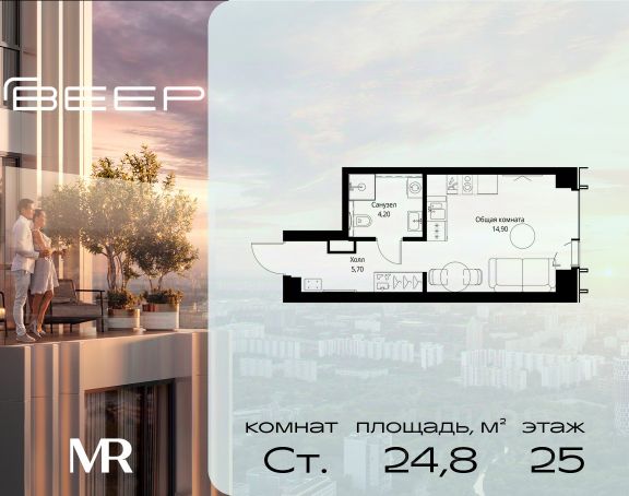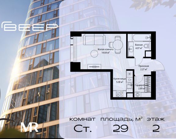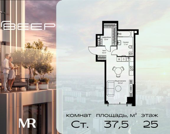Старт продаж новой очереди! Продаётся студия общей площадью 29.01 м² без отделки в ЖК Веер на 6-м этаже 35 этажного дома. Веер.2 — вторая очередь футуристичного квартала бизнес-класса Веер. Это новая экосистема в престижном Западном округе Москвы, поражающая масштабностью внутренней инфраструктуры. ЖК находится всего в 5 минутах от Кутузовского проспекта и в 15 минутах от Сколково. Ансамбль из четырех стеклянных башен с доминантой в 237 метров разработан по принципу современного урбанизма и выражен в лаконичных объемах — параллелепипедах со сглаженными углами, которые придают зданиям утонченный вид. Расположение и транспортная доступность: • Образовательный комплекс в составе топовой школы, состоящий из двух зданий: основное на 1500 школьных и 450 дошкольных мест, отдельное здание детского сада на 300 мест. • Парк "Долина реки Сетунь" площадью более 700 гектаров • Рядом МГУ, МГИМО, РАНХиГС и Академия ФСБ • 15 минут по Кутузовскому проспекту до ужина в центре с видом на Москву-реку • 18 минут пешком до м. "Давыдково" • Открытие новых станций метро в шаговой доступности в будущем Инфраструктура: Двор в Веер.2 — это ассиметричные холмы, каменные "лабиринты", зеленые ковры и хвойные островки с единой живой экосистемой. Здесь есть все: • Павильон умиротворения Место отдыха под навесом в спокойной части двора, окруженное деревьями. • Активная тропа Тактильная дорога из камней разного диаметра для расслабляющих прогулок. • Бизнес-гарден Оборудованное пространство для работы на свежем воздухе со столом и встроенными розетками. • Детская площадка Двухуровневая площадка "Ботаника" с песочницей, переговорной трубой и горкой "Дружба". Компания MR предлагает своим клиентам специальные условия приобретения квартир в рамках программ ипотечного кредитования от банков-партнеров.