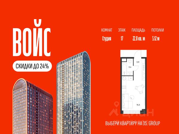 Дополнительная скидка в офисе продаж! Продается уютная студия площадью 29,5 кв.м на 2 этаже жилого комплекса бизнес-класса Войс. Общая площадь: 29,5 кв.м., жилая: 17,2 кв.м., площадь кухни-гостиной: 22,7 кв.м., высокие потолки: 3,12 м., санузел совмещенный. О проекте: Войс. Высокие стандарты жизни Мы уверены, что высокие идеалы неизменно помогают достигать высот. Создавая Войс, мы ориентировались на людей с высокими требованиями к качеству и безупречным вкусом. Башни жилого комплекса, сочетают элегантную форму с динамичной геометрией фасадов, устремляются ввысь и отвечают самым высоким стандартам строительства. Технологичность, воплощенная в архитектуре - это ваш, собственный Войс. Преимущества локации Близость к метро Текстильщики, БКЛ и МЦК Новохохловская (10 мин) Рядом природный заповедник и конно-спортивная база Кузьминки-Люблино Будущее окружение Проект Южный порт - Текстильщики с деловым центром Сити-2 Небоскребы высотой до 300м Культурный центр с амфитеатром Променад вдоль Москвы-реки и яхт-клуб Архитектура Проект от Архитектурной мастерской Алексея Ильина Две перпендикулярные башни с арочными вершинами Высокая башня: светло-серый металл Низкая башня: терракотовая керамика Благоустройство Внешняя зона: парковки, магазины, кафе Внутренний двор: закрытая территория с озеленением Шумозащитный экран Сезонное озеленение Встречи на высоте Гранд-лобби высотой 8м Дизайнерская мебель Умные скоростные лифты Услуги Детский центр с игровой зоной Фитнес-студия для жителей