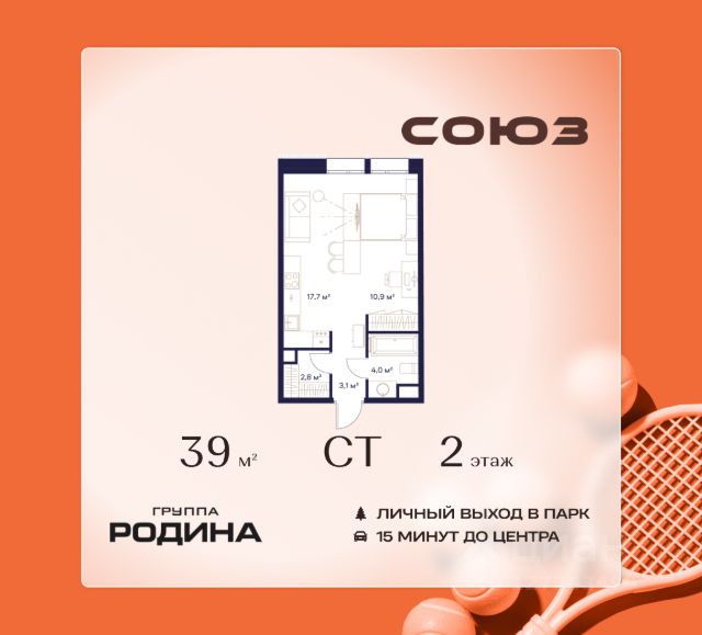 Продаётся квартира-студия площадью 28.9 м² на 12 этаже в Жилом Комплексе "Союз".