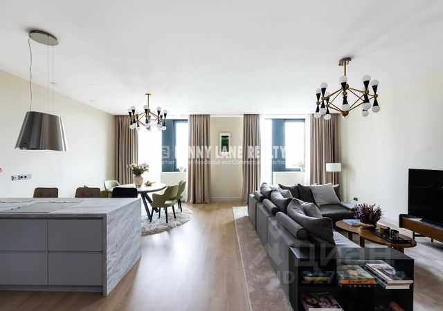 Площадь квартиры 155 кв.м, потолки 3,2 м, перепланировка выполнена в соответствии с законом (все документы имеются). На первом уровне расположены: прихожая, санузел и три комнаты (просторная кухня-гостиная, спальня, кабинет). Санузел оборудован итальянской сантехникой, английской душевой кабиной, элегантной мраморной ванной; пол и стены отделаны керамогранитом Kerama Marazzi; выполнен авторский витраж с подсветкой. Из кухни-гостиной на второй этаж ведет красивая деревянная лестница, которая является украшением квартиры. На втором уровне расположены: просторная комната отдыха с электрокамином, две изолированные спальни со встроенной мебелью, санузел, встроенная система хранения.